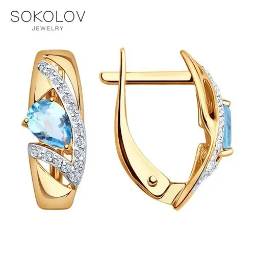 Серьги SOKOLOV из золота с топазами и фианитами, Золото, 585, Женские, Серьги 2022 тренд, Оригинальная продукция