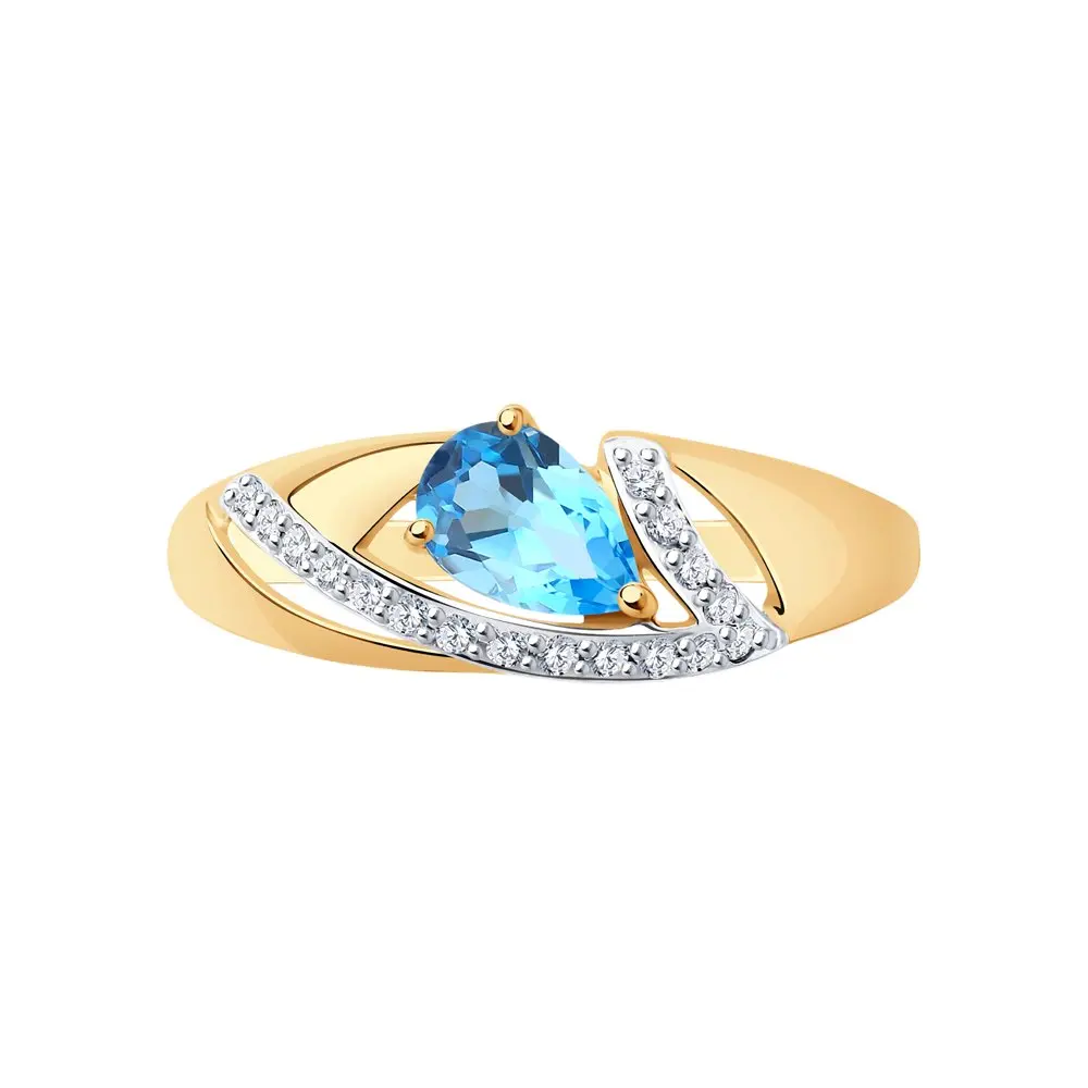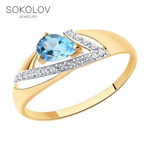 Кольцо SOKOLOV из золота с топазом и фианитами, Золото, 585, Женское, Оригинальная продукция