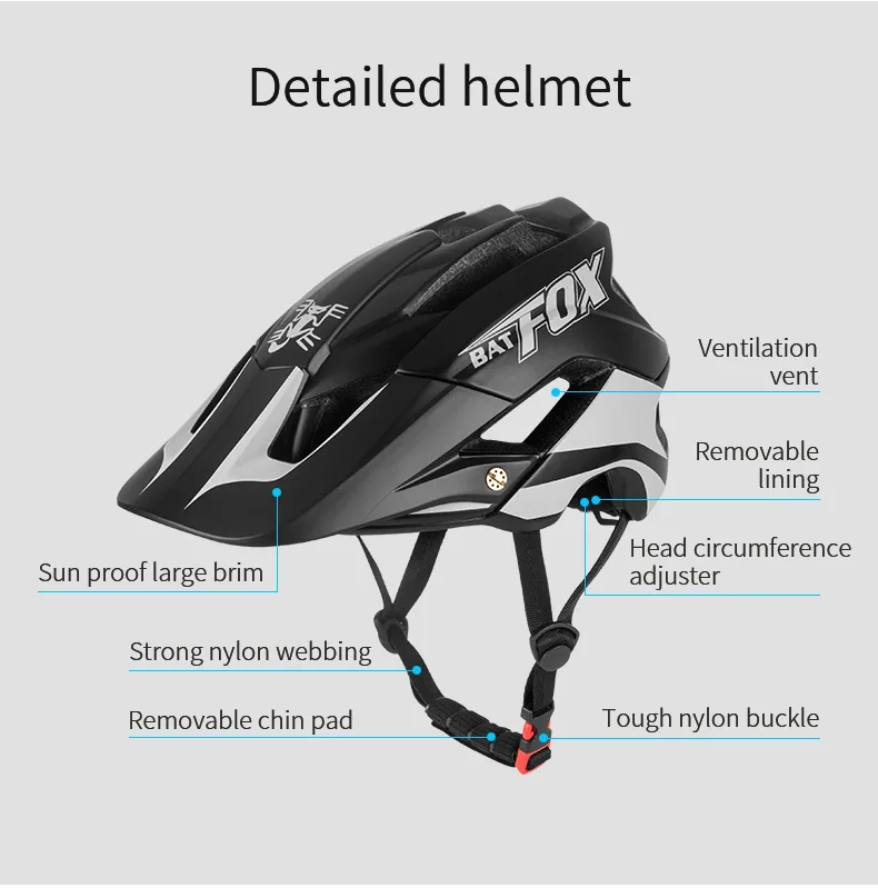Велосипедный шлем BATFOX для горных велосипедов, светоотражающая бе...