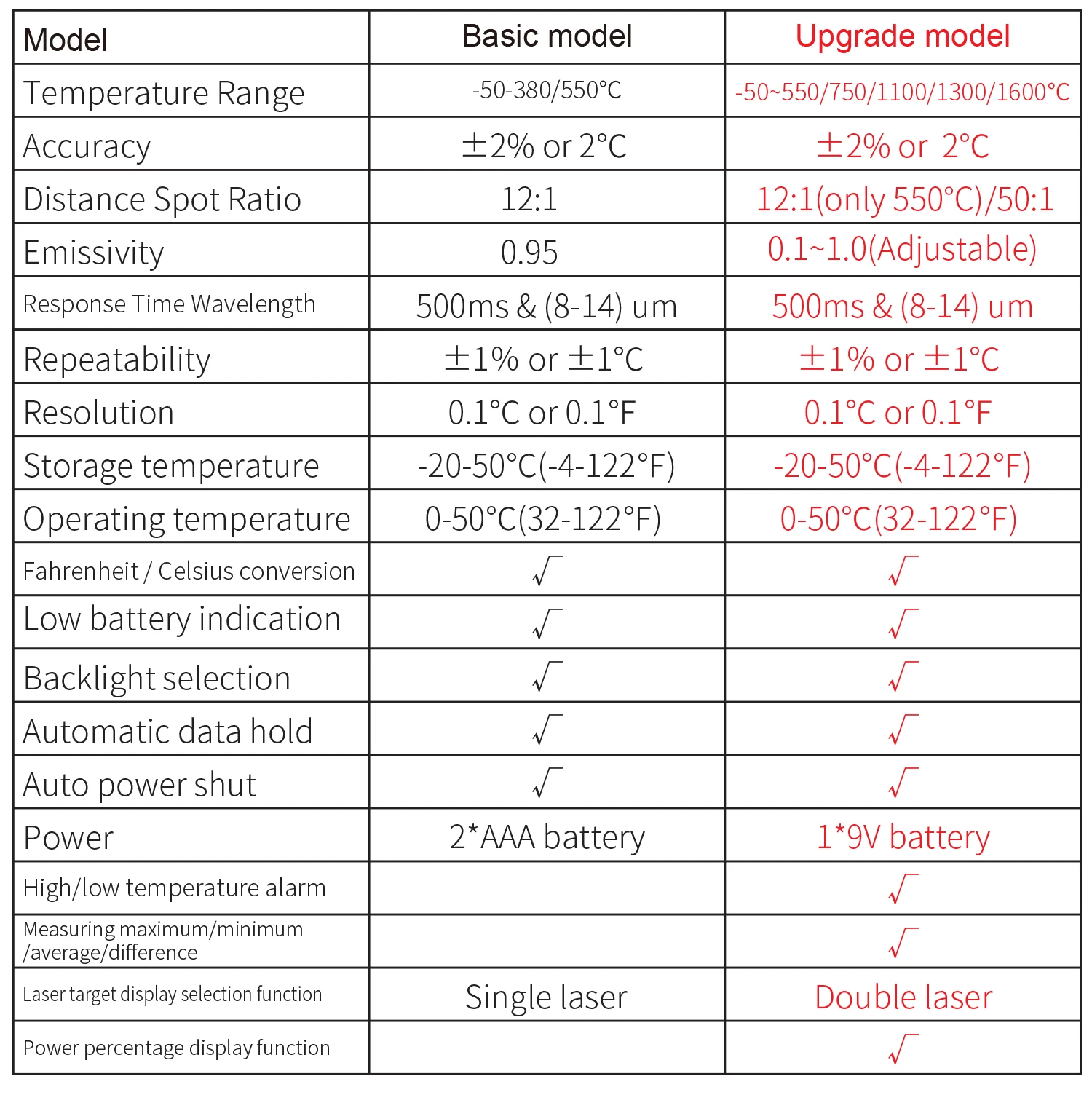 Measuring Range-50-550 / 750/1100/1300/1600 Degrees