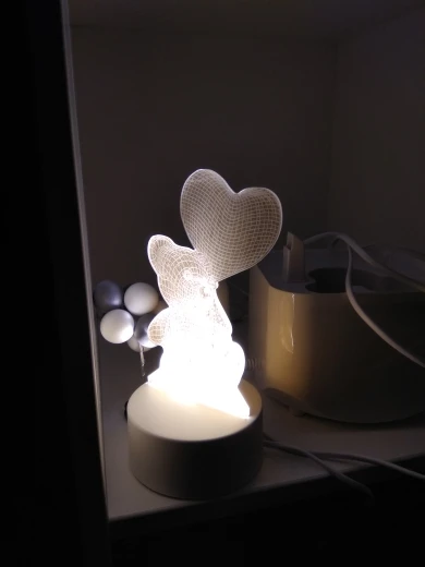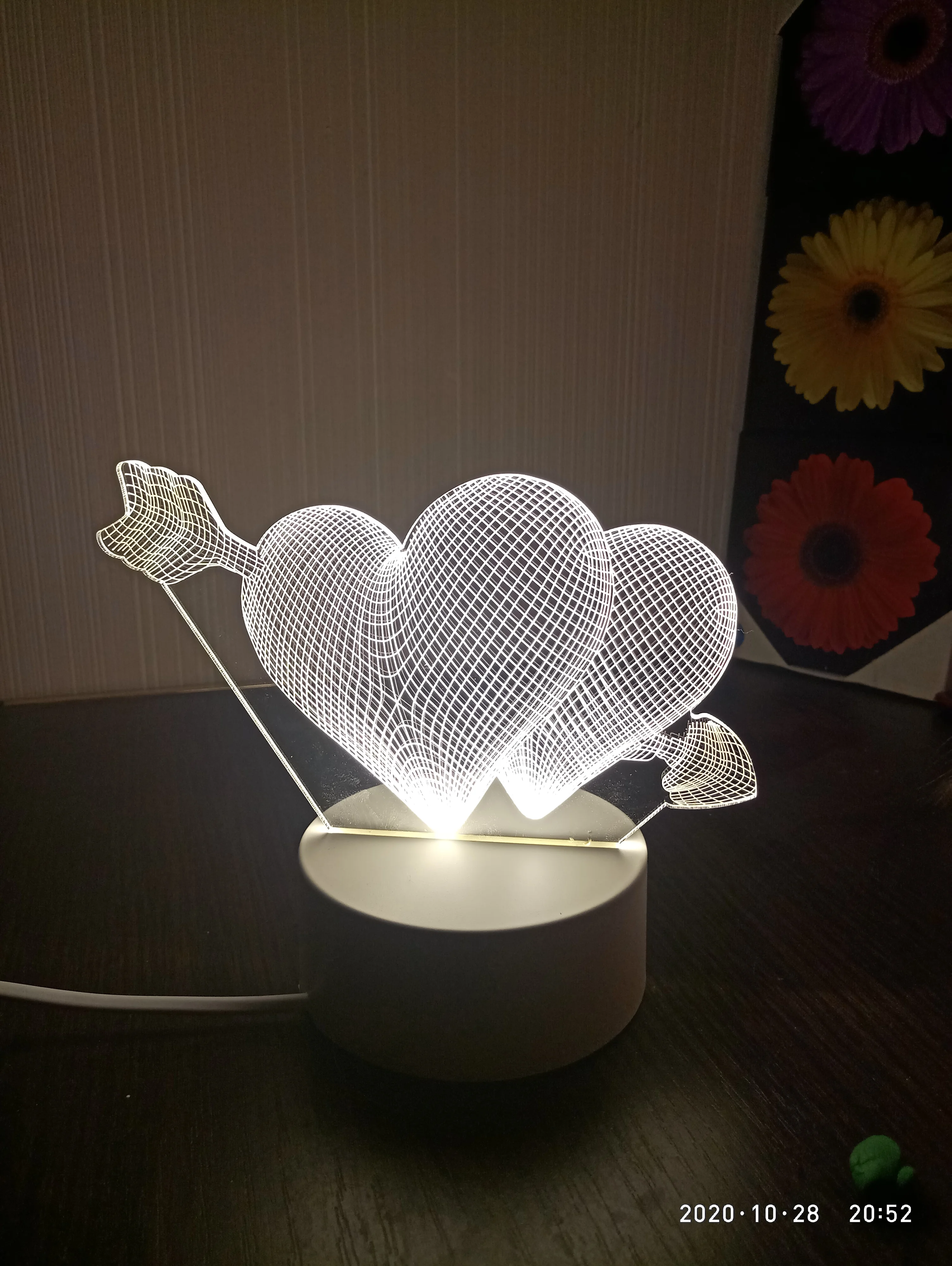 Светильник маленький, светит ярко, эффект объёма в основном заметен на фото, в живую - зависит от того, под каким углом посмотреть. Продавец отправил товар очень быстро, до Челябинска посылка дошла за 3 недели, все целое, все работает. В целом, покупкой довольна.