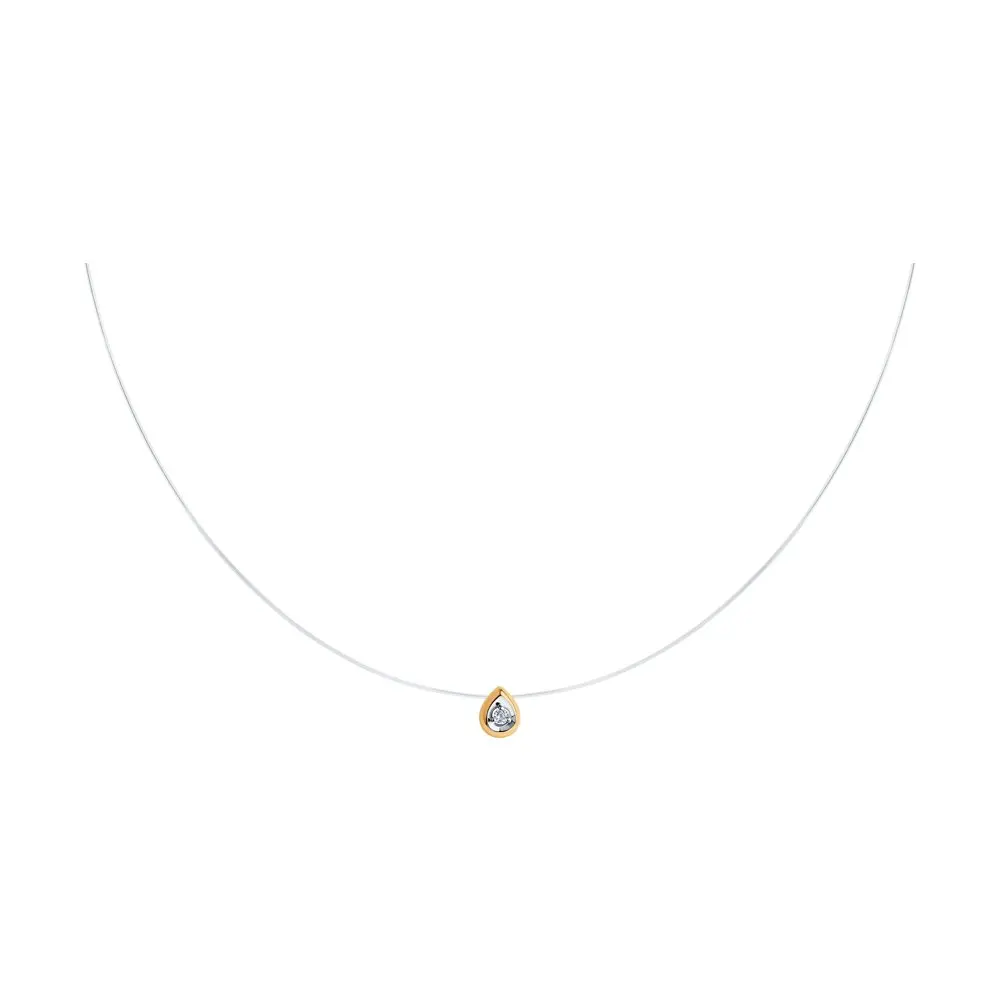 Колье на леске SOKOLOV из золота с фианитомИзысканный и элегантный акцент повседневного образа – колье на леске-невидимке. Благодаря прозрачной, едва заметной леске, создаётся впечатление, что камень-вставка буквально парит в воздухе и держится на вашей коже без каких-либо ухищрений. Сияющий фианит в золотом обрамлении подчёркивает лёгкость, нежность и изящность образа. Несмотря на сдержанный дизайн, украшение неизбежно притягивает к себе восхищённые взгляды.