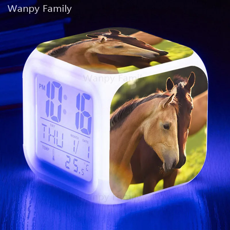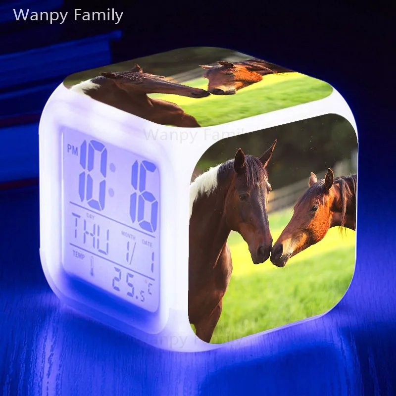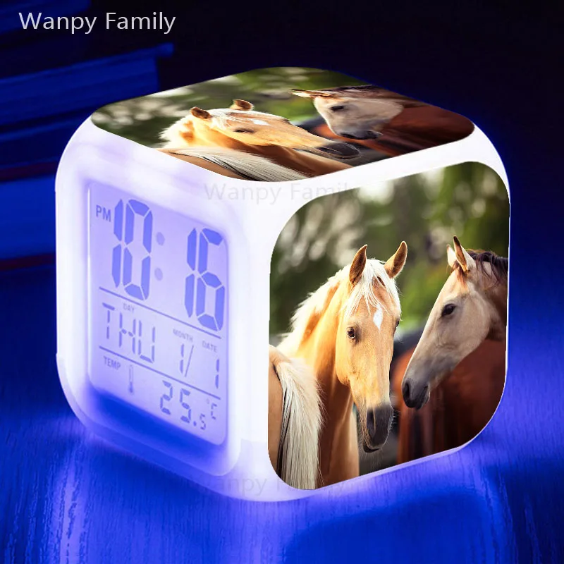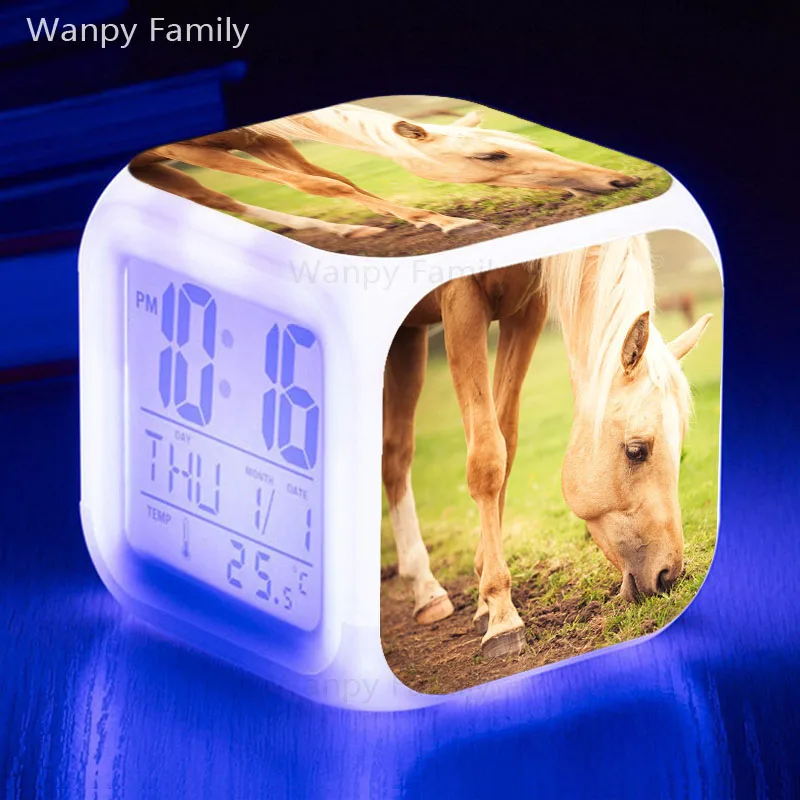 Милая лошадка светодиодный Будильник Детские 7 цветов меняющиеся цифровые настольные часы светильник куб часы детские подарки на день рождения