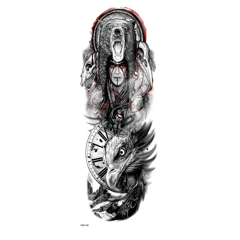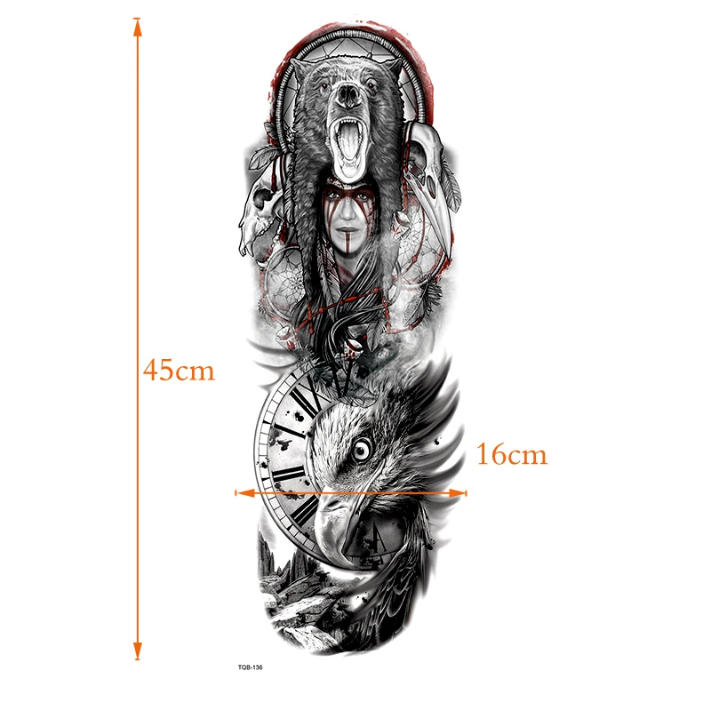 Кельтский друид на всю руку водостойкие Временные татуировки для мужчин медведь и орел блестящие татуировки на руку рукава Временные татуировки Поддельные Татуировки