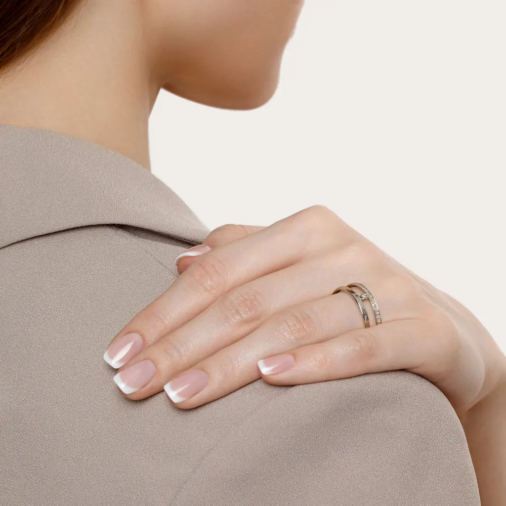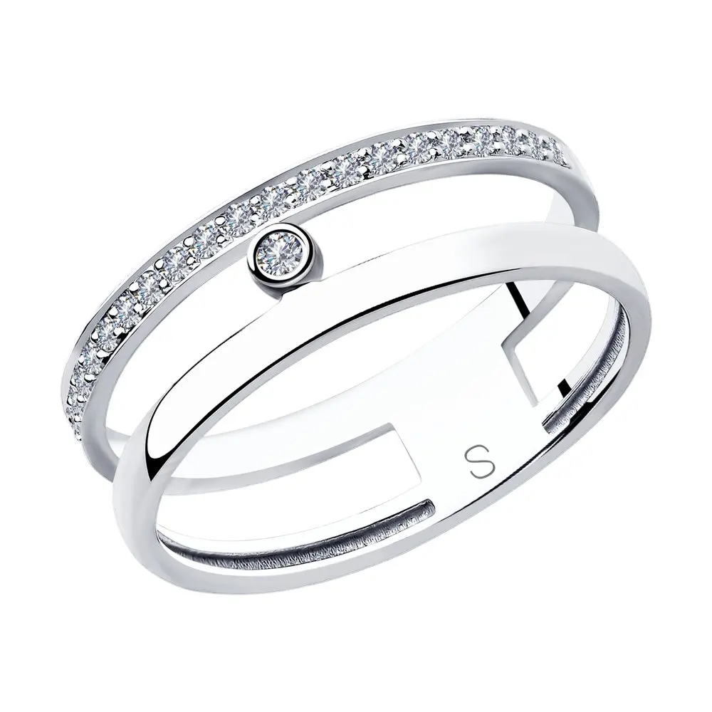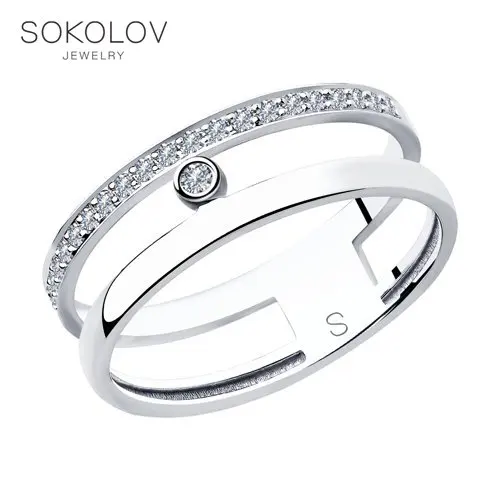 Кольцо SOKOLOV Diamonds из белого золота с бриллиантамиСтильное кольцо из белого золота с бриллиантами благодаря своему неординарному дизайну отвечает последним тенденциям ювелирной моды. Двойная шинка с единым основанием и дорожка сверкающих бриллиантов – приметы самого модного минимализма. Оригинальное решение как для будней, так и изысканных вечерних образов.