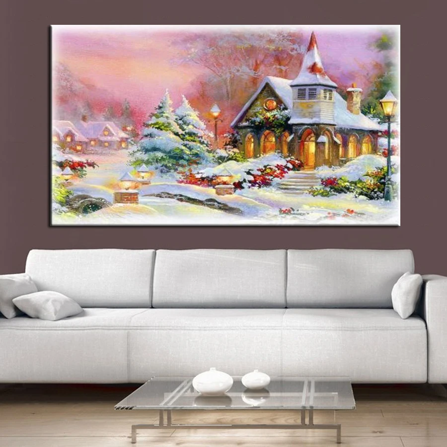 Алмазная 5d мозаика сделай сам, большая абстрактная картина с изображением домика снега, вышивка крестиком, полное украшение ландшафта, AA2407