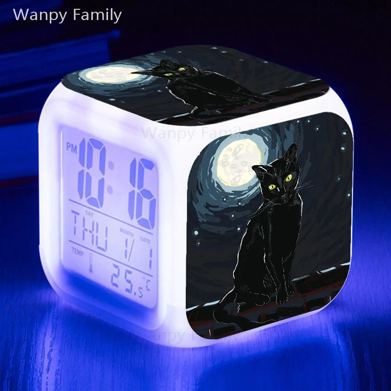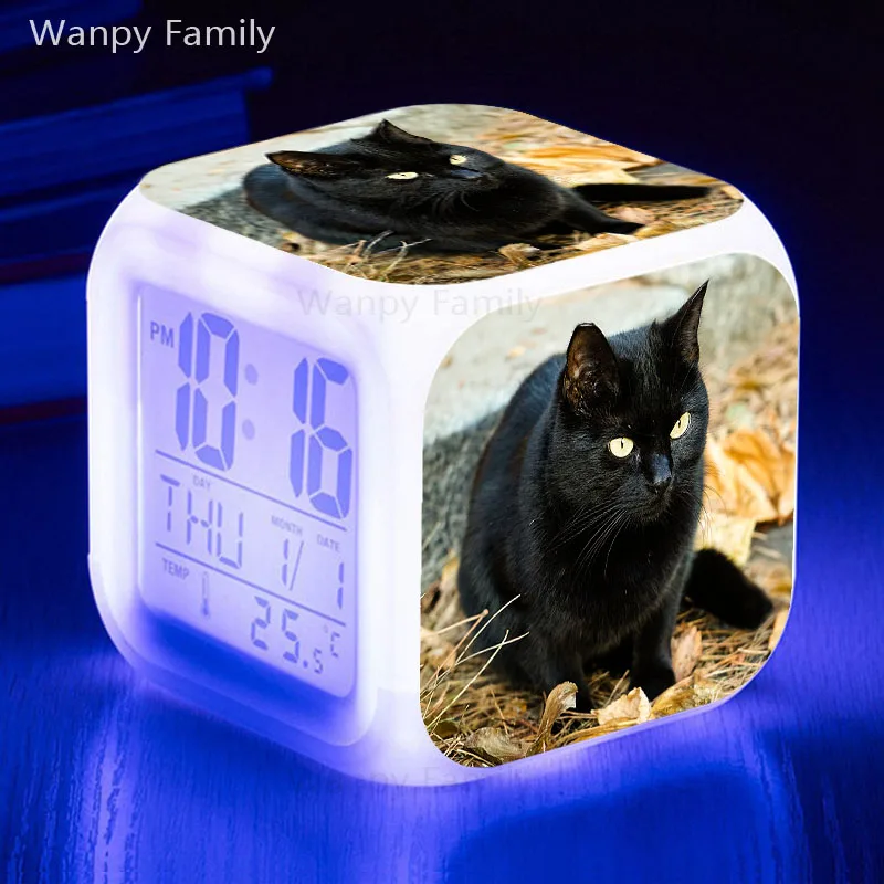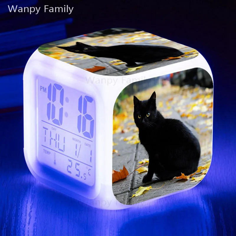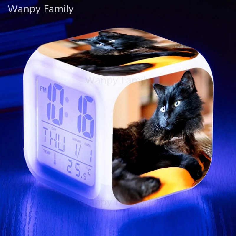 Детский подарок, будильник с котом, светящиеся светодиодные цифровые часы с изменением цвета, большой ЖК-экран с котенком, многофункциональные часы с ночным освесветильник ением, часы