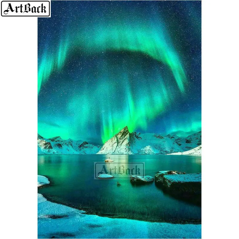 5d алмазная живопись Северное сияние горное озеро водный Пейзаж Вышивка крестиком полная квадратная Алмазная мозаика 3d Алмазная вышивка