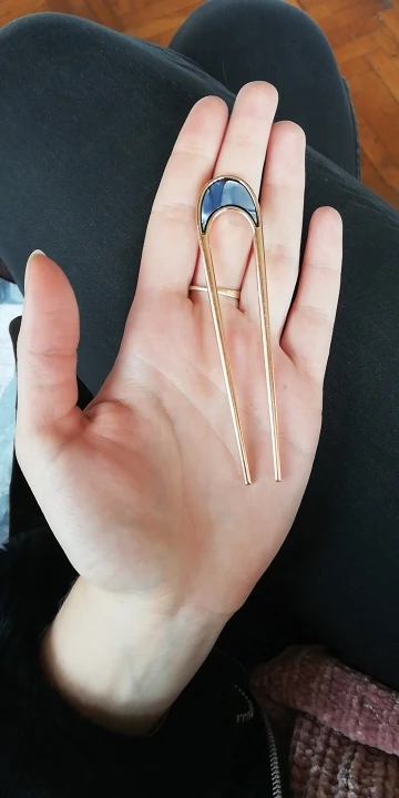 товар пришел за три недели. шпилька хорошо держит пучок,металл гладкий. единственное что декор был отдельно,за что снимаю одну звёздочку.