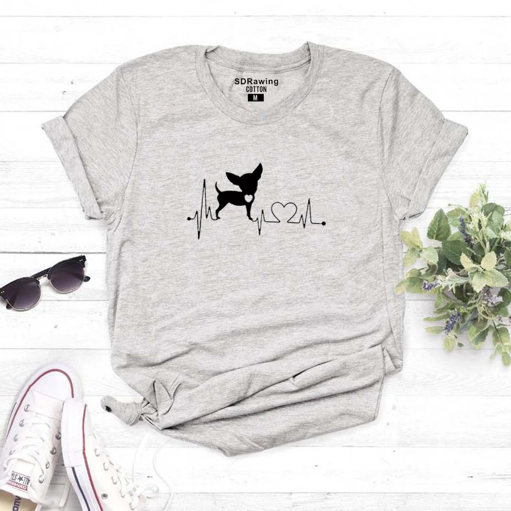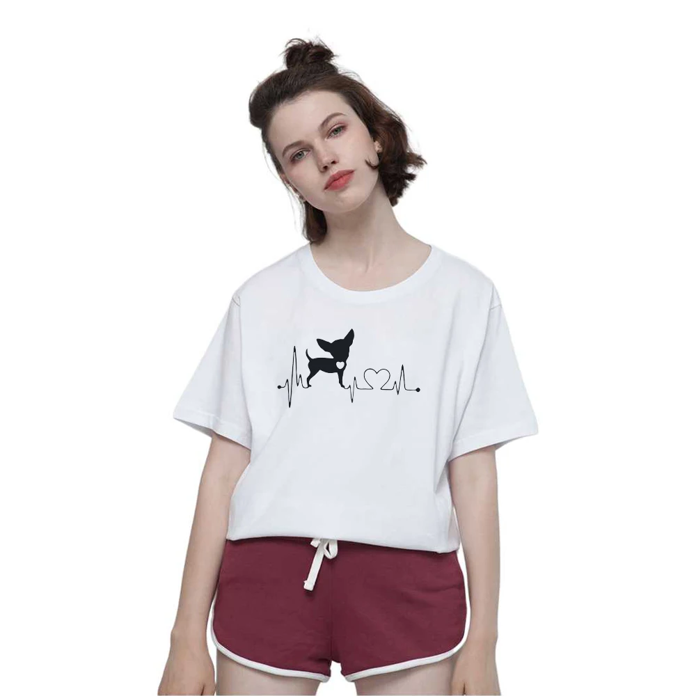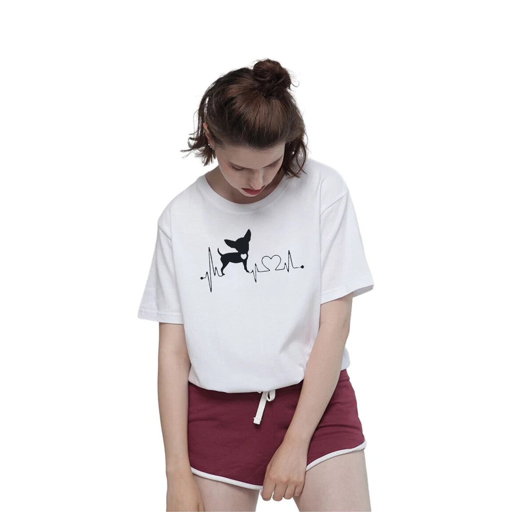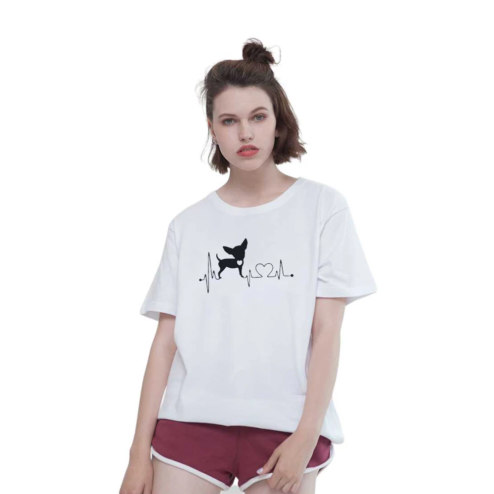 Футболка женская хлопковая с коротким рукавом, с изображением собак чихуахуа