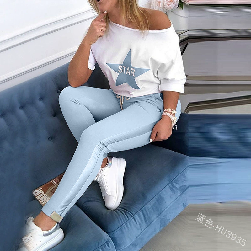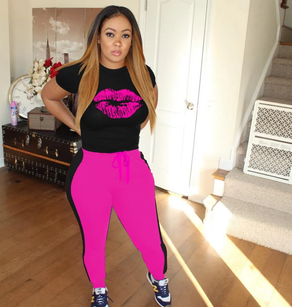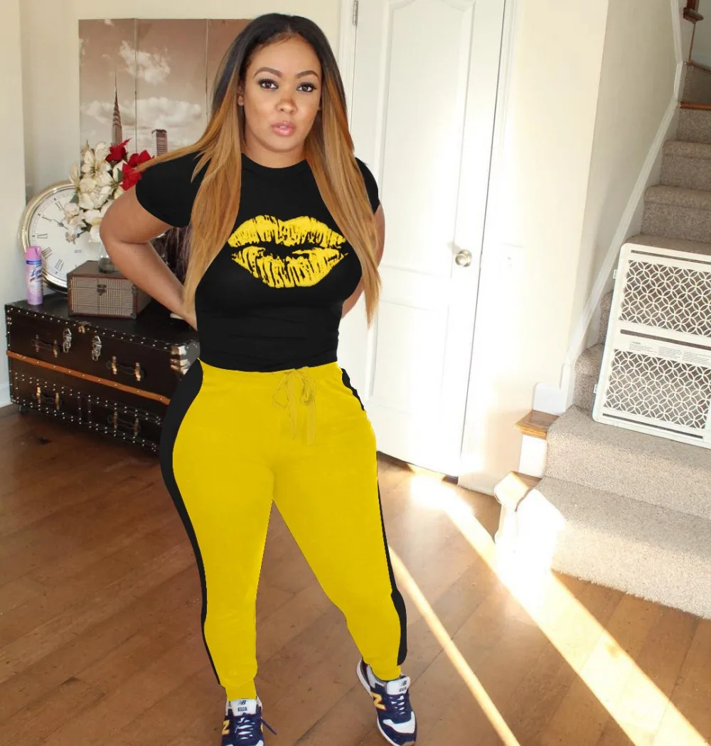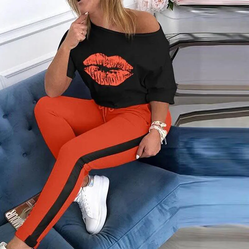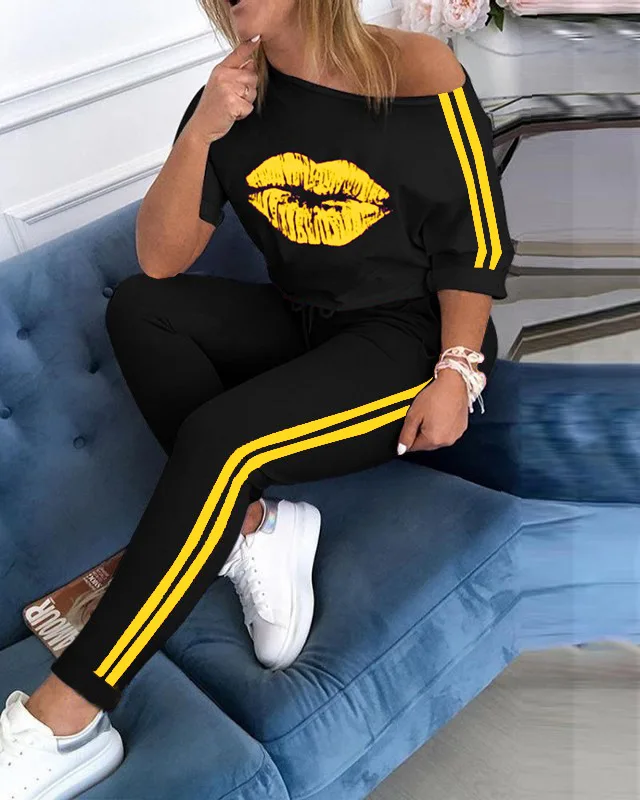 Женский спортивный костюм с принтом в виде губ, летний сексуальный женский комплект из 2 предметов с открытыми плечами, элегантный пуловер и юбка с эластичным поясом, 2021