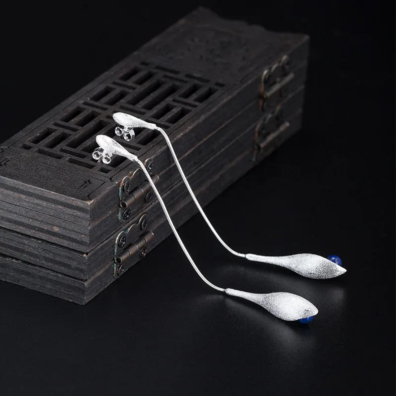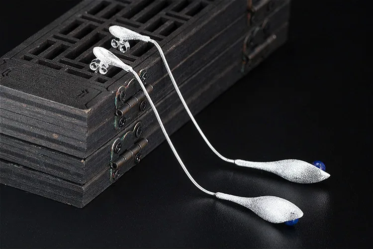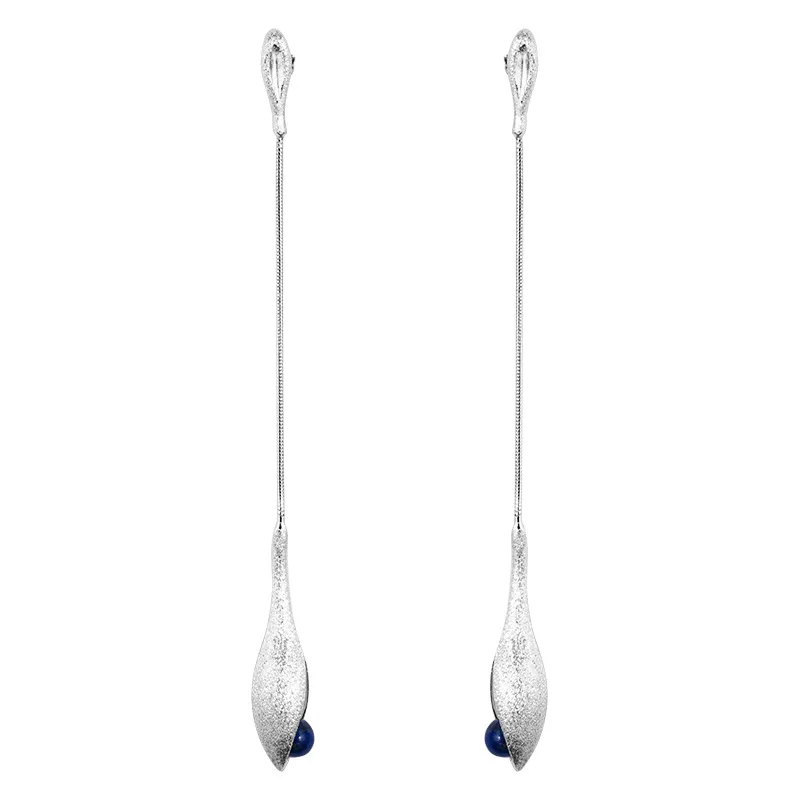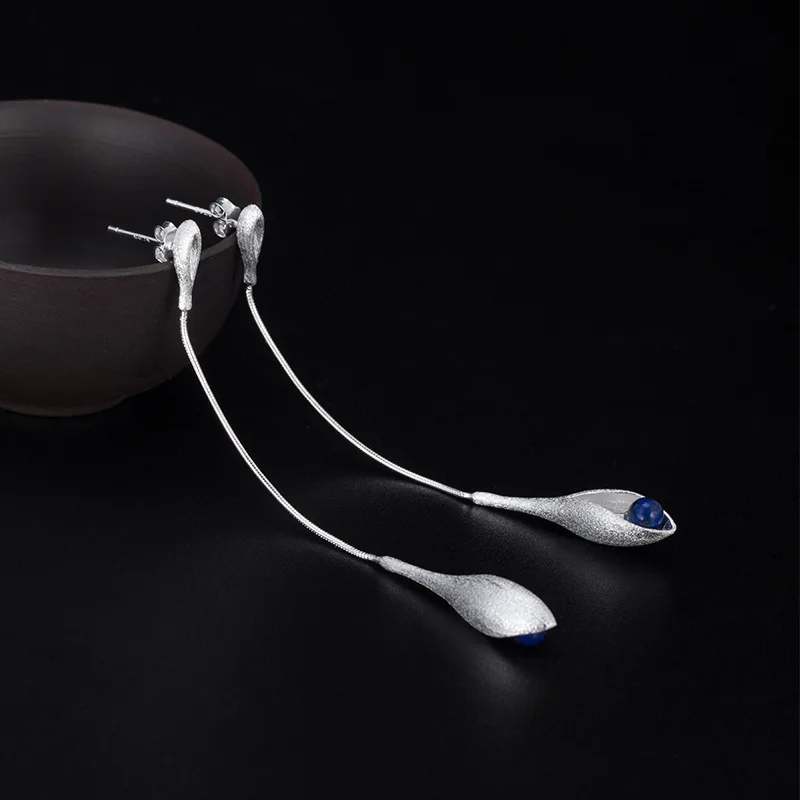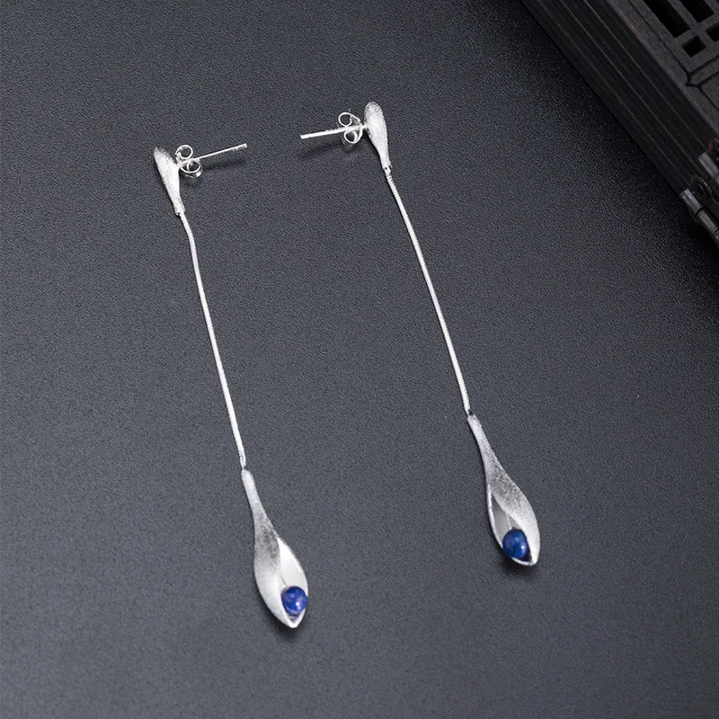Серьги Flyleaf из настоящего серебра 925 пробы женские, длинные висячие украшения с цветами, Лазуритом, подарок для девушки ручной работы