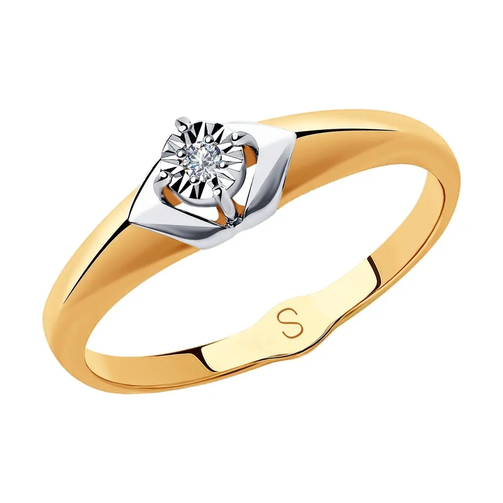 Кольцо SOKOLOV Diamonds из комбинированного золота с бриллиантом, Золото, 585, Женское, Оригинальная продукция
