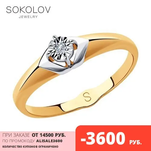 Золотое кольцо c бриллиантами SOKOLOV Diamonds, 585, Женское, Ориги...