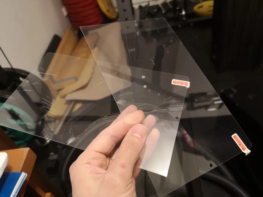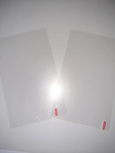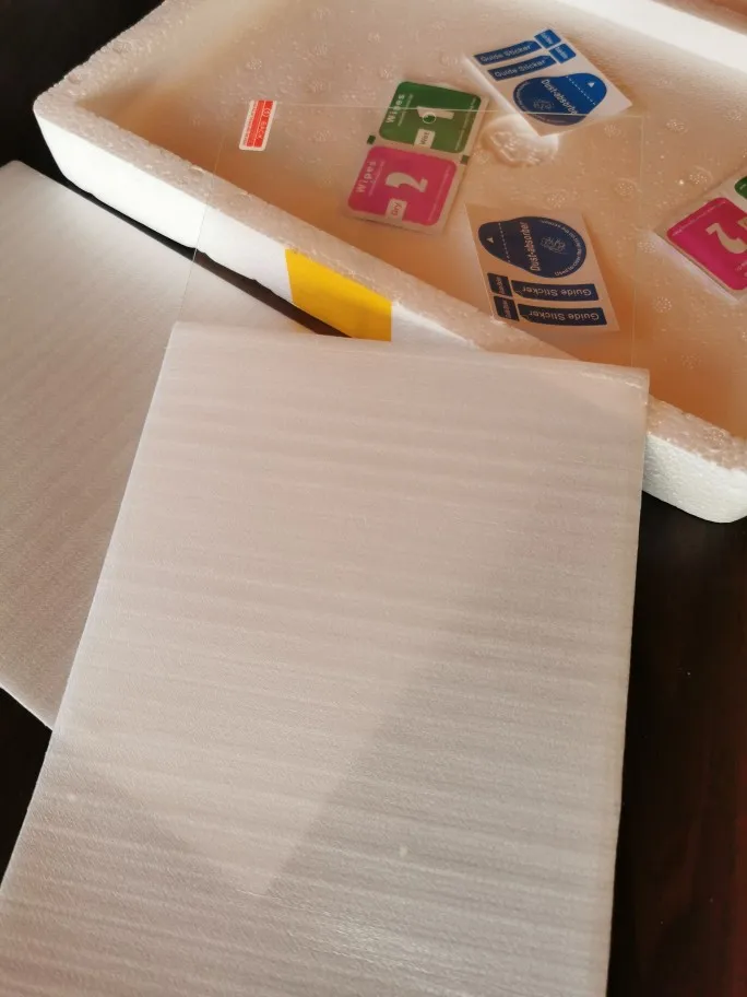Mooi dikke beschermende film. Niet heel makkelijk aan te brengen zonder minuscule vuiltjes of licht eronder.
