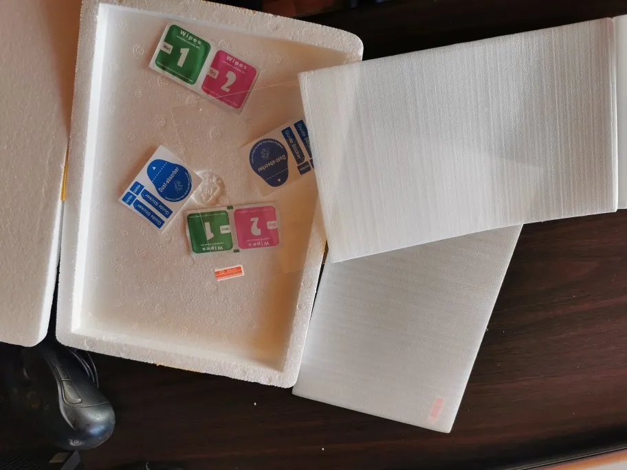 Продукт надежно упакован и чрезвычайно быстрая доставка. К сожалению, протектор экрана слишком мал на 1-3 мм. Поэтому вокруг некрасивая рамка, так как дисплей покрыт 100%