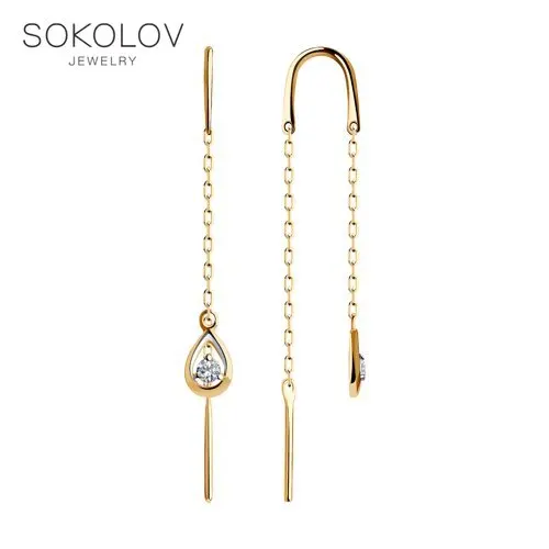 Серьги SOKOLOV из золота с фианитами, Золото, 585, Женские, Серьги ...