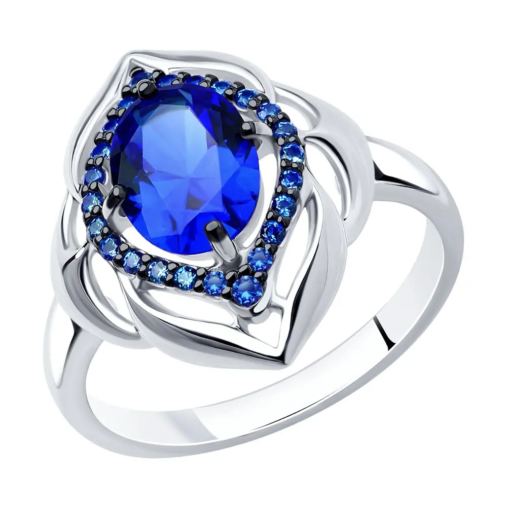 Кольцо SOKOLOV из серебра с корундом сапфировым (синт.) и синими фианитами, Серебро, 925, Женское, Оригинальная продукция