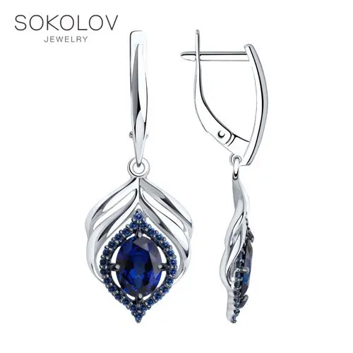 Серьги SOKOLOV из серебра с корундами сапфировыми (синт.) и синими фианитами, Серебро, 925, Женские, Серьги 2022 тренд