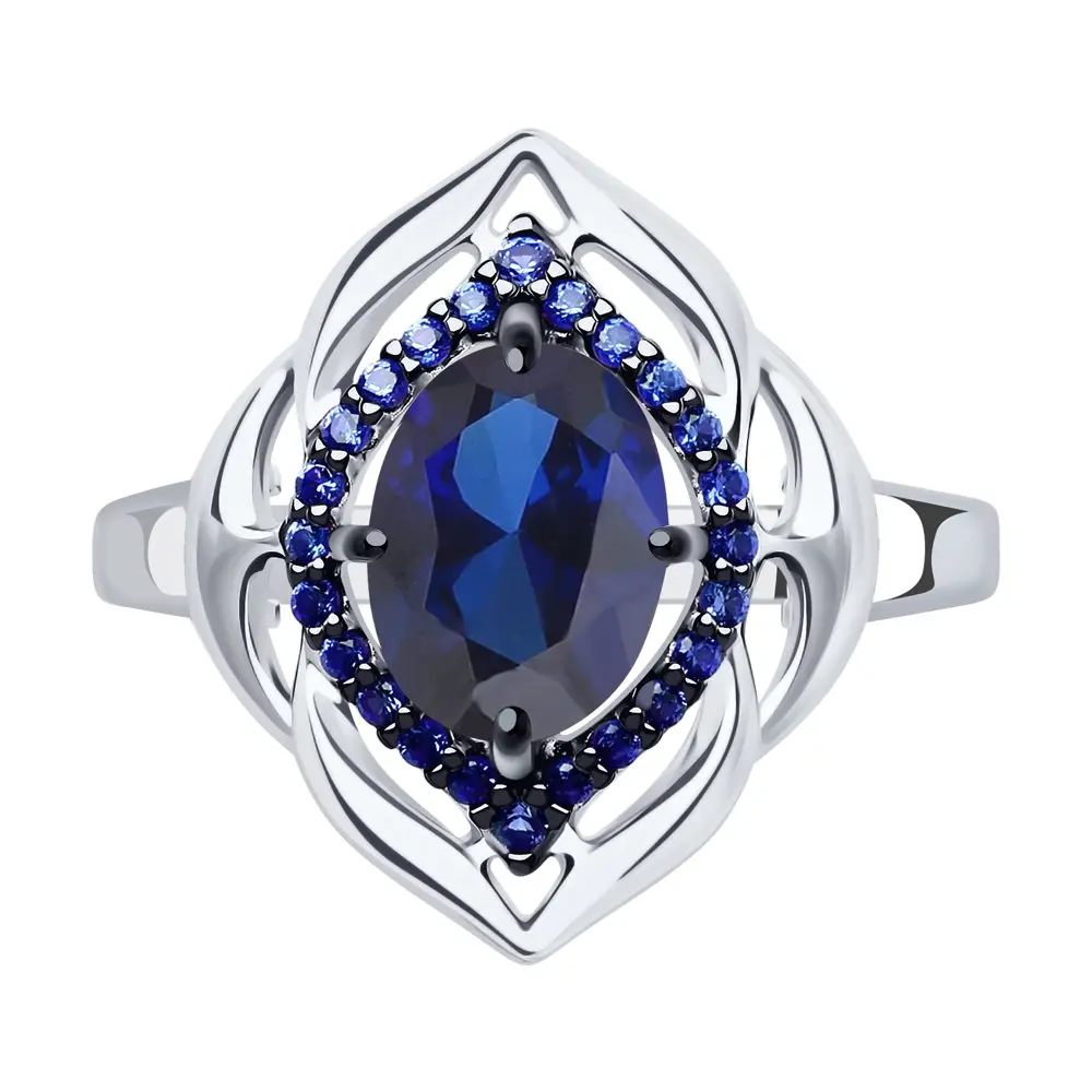 Кольцо SOKOLOV из серебра с корундом сапфировым (синт.) и синими фианитами