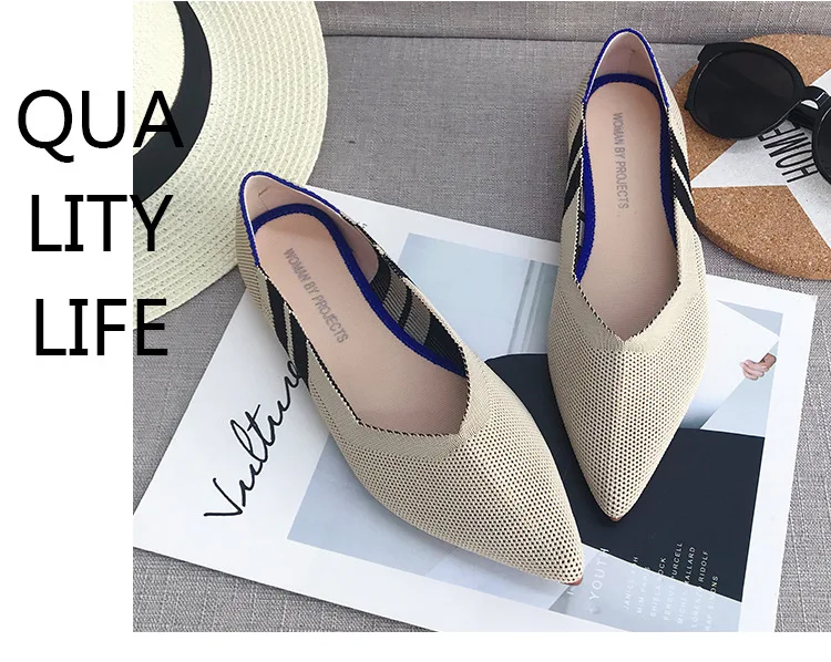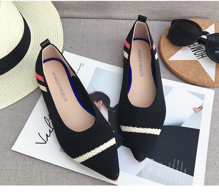 Балетки женские на плоской подошве, трикотажные удобные дышащие туфли с острым носком, без застежки, Роскошные, разные цвета, 2020