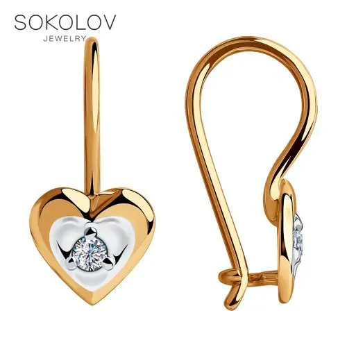 Серьги SOKOLOV из золота с фианитами, Золото, 585, Детские, Серьги 2022 тренд, Оригинальная продукция