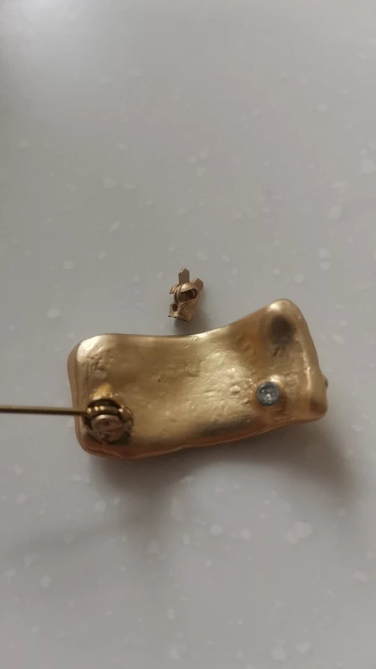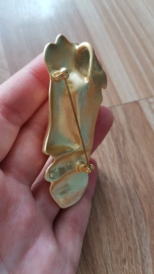Брошь ООООчень стильная, выглядит как состаренное матовое золото! Так как не кольцо, если и облезет то не очень скоро. Рекомендую. Пришла молниеносно! Продавцу - респект!