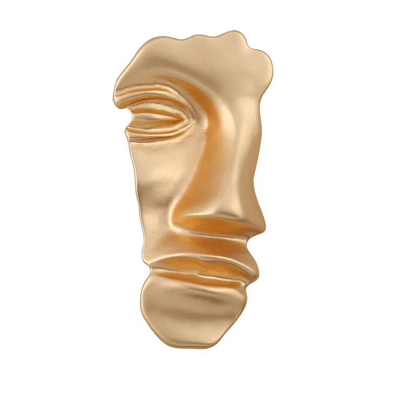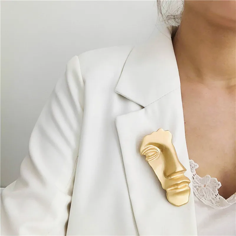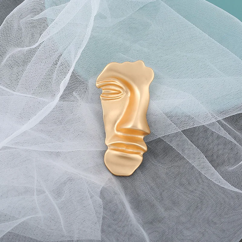 2019, Преувеличенные, смешные, абстрактные, матовое золото, металл, западные аксессуары, половина лица, портрет, женские броши, вечерние