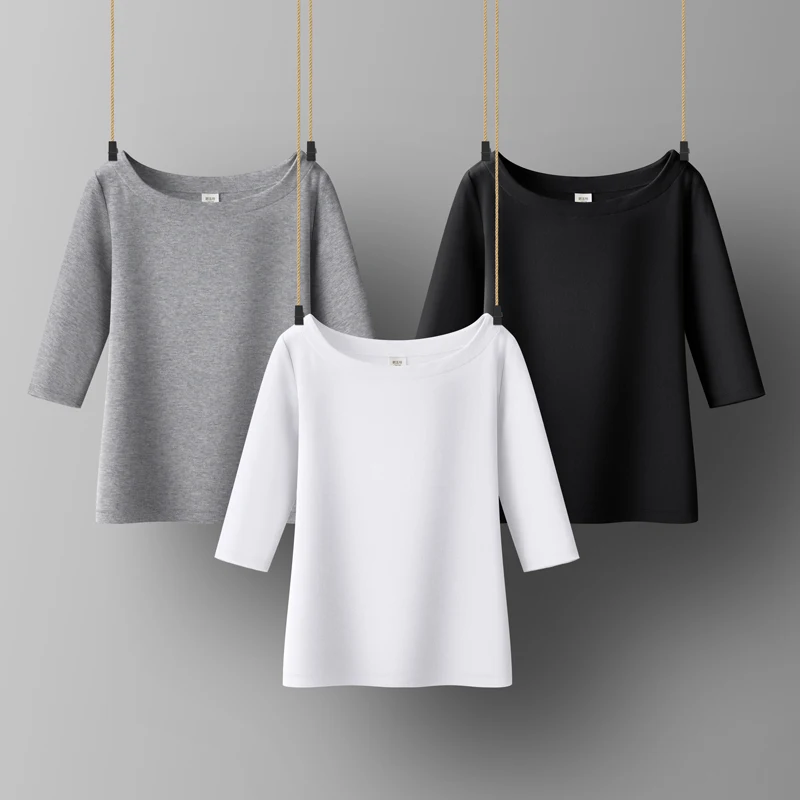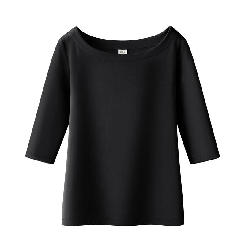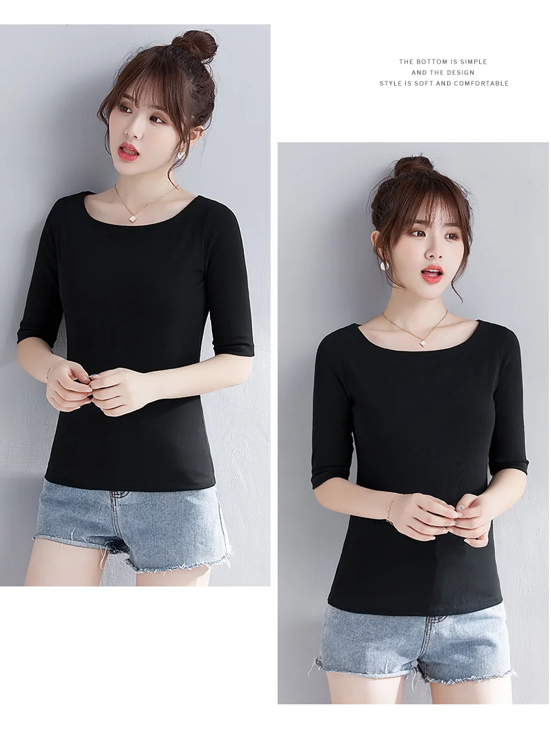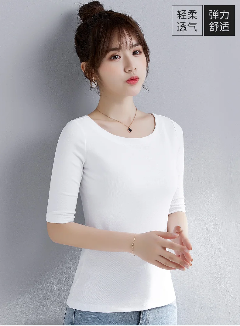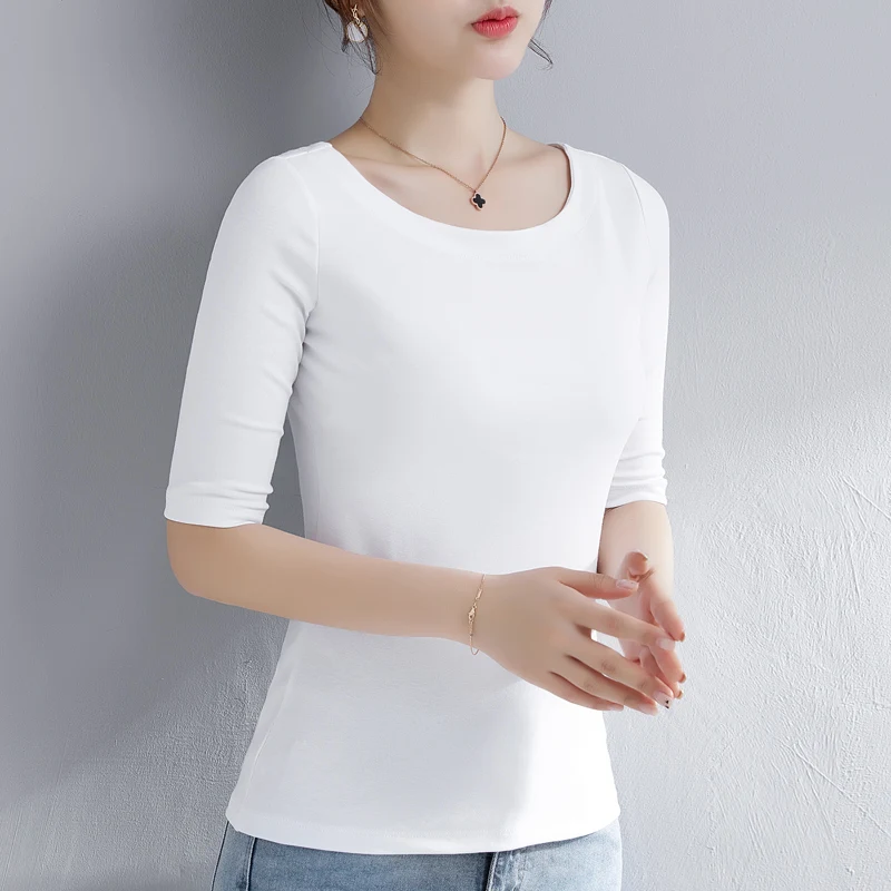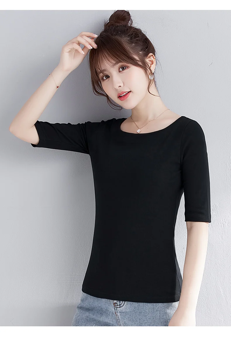Женская хлопковая футболка, однотонная, с воротником-лодочкой, с полурукавами, универсальная, летняя