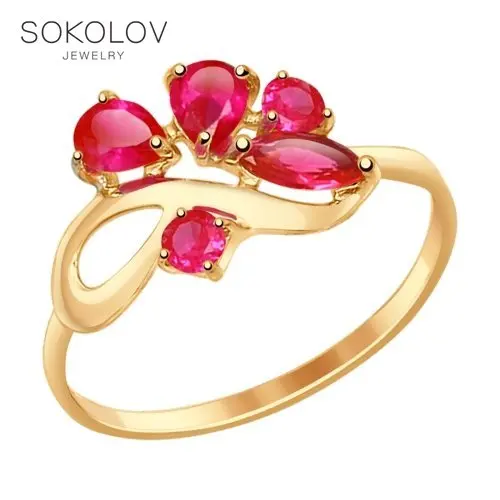 Кольцо SOKOLOV из золота с корундами рубиновыми, Золото, 585, Женское, Оригинальная продукция