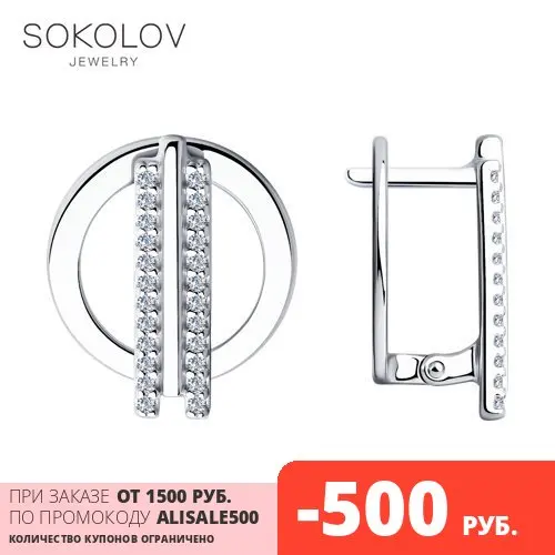 Серьги SOKOLOV из серебра с фианитами, Серебро, 925, Женские, Серьг...