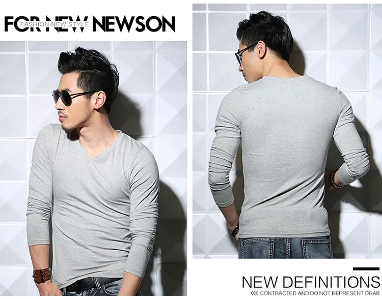 Мужские футболки MRMT из лайкры и хлопка, Мужская футболка с длинным рукавом и V-образным вырезом, хлопковая футболка, тонкая однотонная облегающая Мужская футболка, 2022