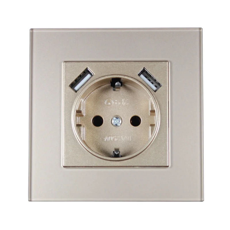USB настенное зарядное устройство Бесплатная доставка двойной USB порт 5В 2а usb настенная розетка Высокое качество Золотой акриловый GGDF-01