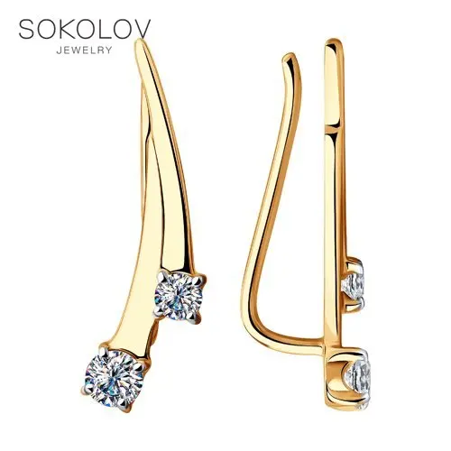 Серьги SOKOLOV из золота с фианитами, Золото, 585, Женские, Серьги 2022 тренд, Оригинальная продукция