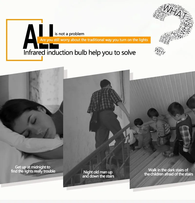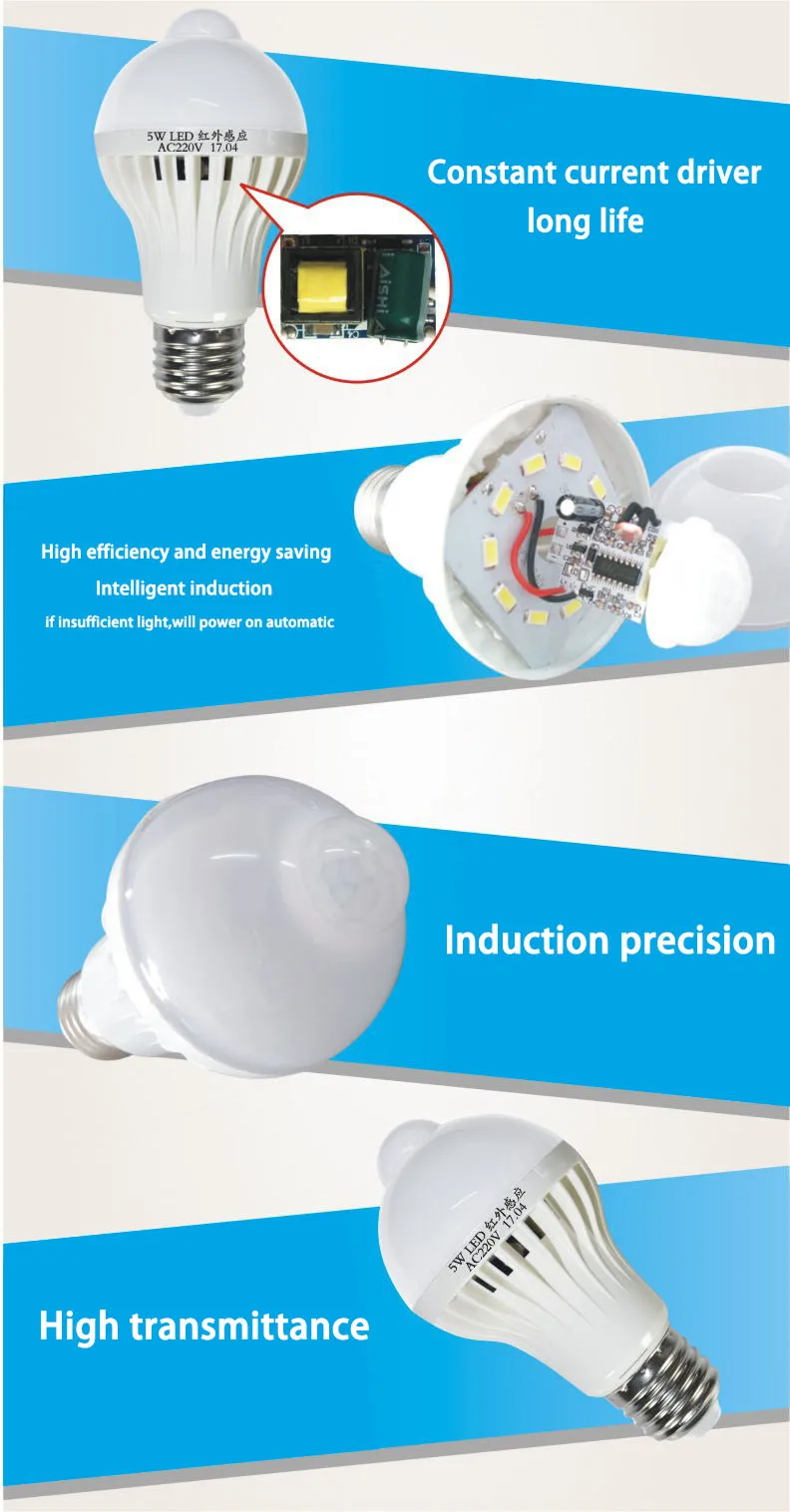 Светодиодный светильник с пассивным ИК датчиком движения, светодиодная лампа Buld E27, вилка 220 В, 3 Вт, 5 Вт, 7 Вт, 9 Вт, 12 Вт, белый, автоматический, ИК-индикатор для корпуса, звук + белая лампа