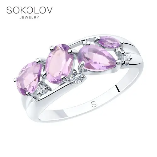 Кольцо SOKOLOV из серебра с аметистами, Серебро, 925, Женское, Ориг...
