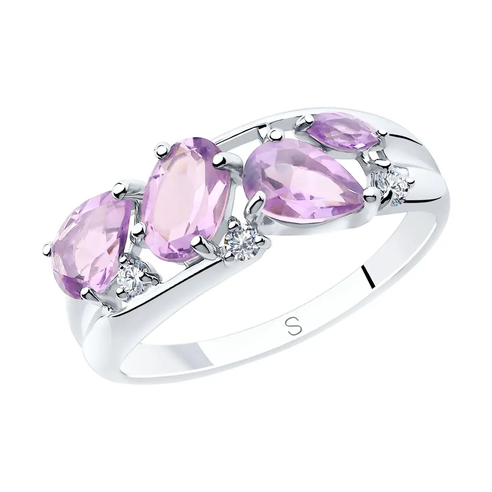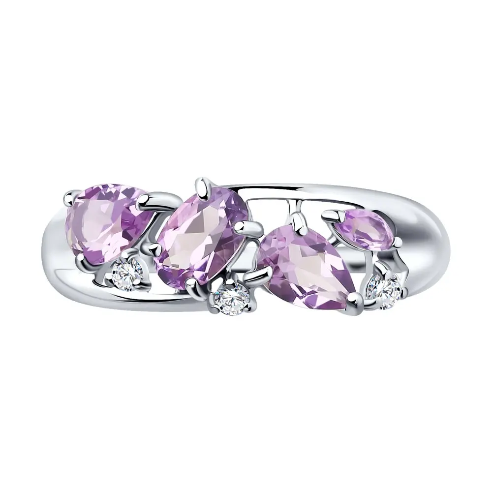 Кольцо SOKOLOV из серебра с аметистами и фианитами, Серебро, 925, Женское, Оригинальная продукция
