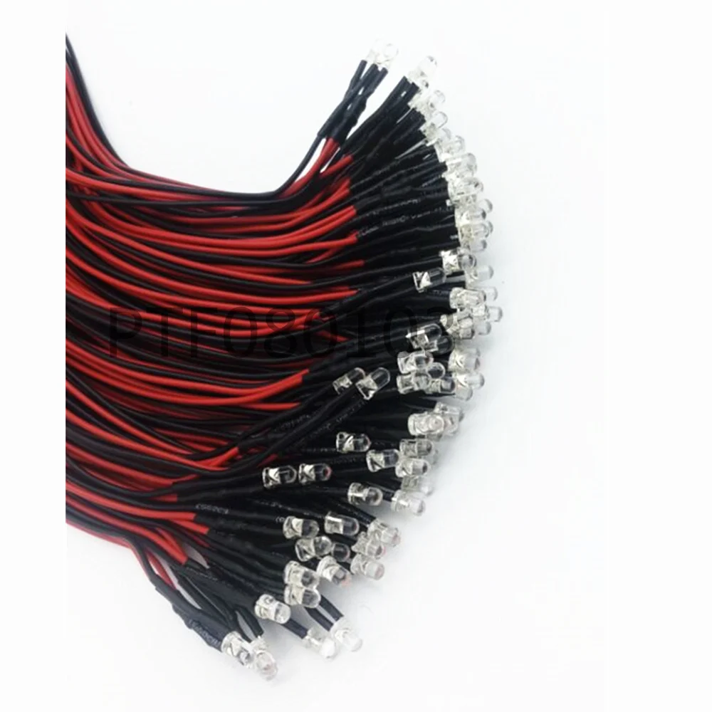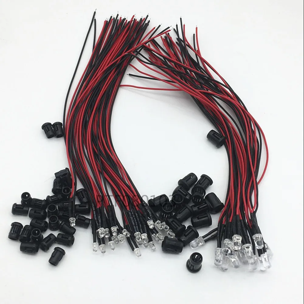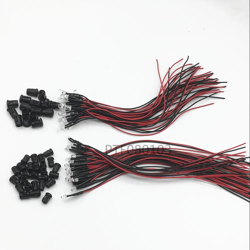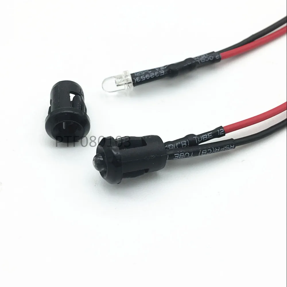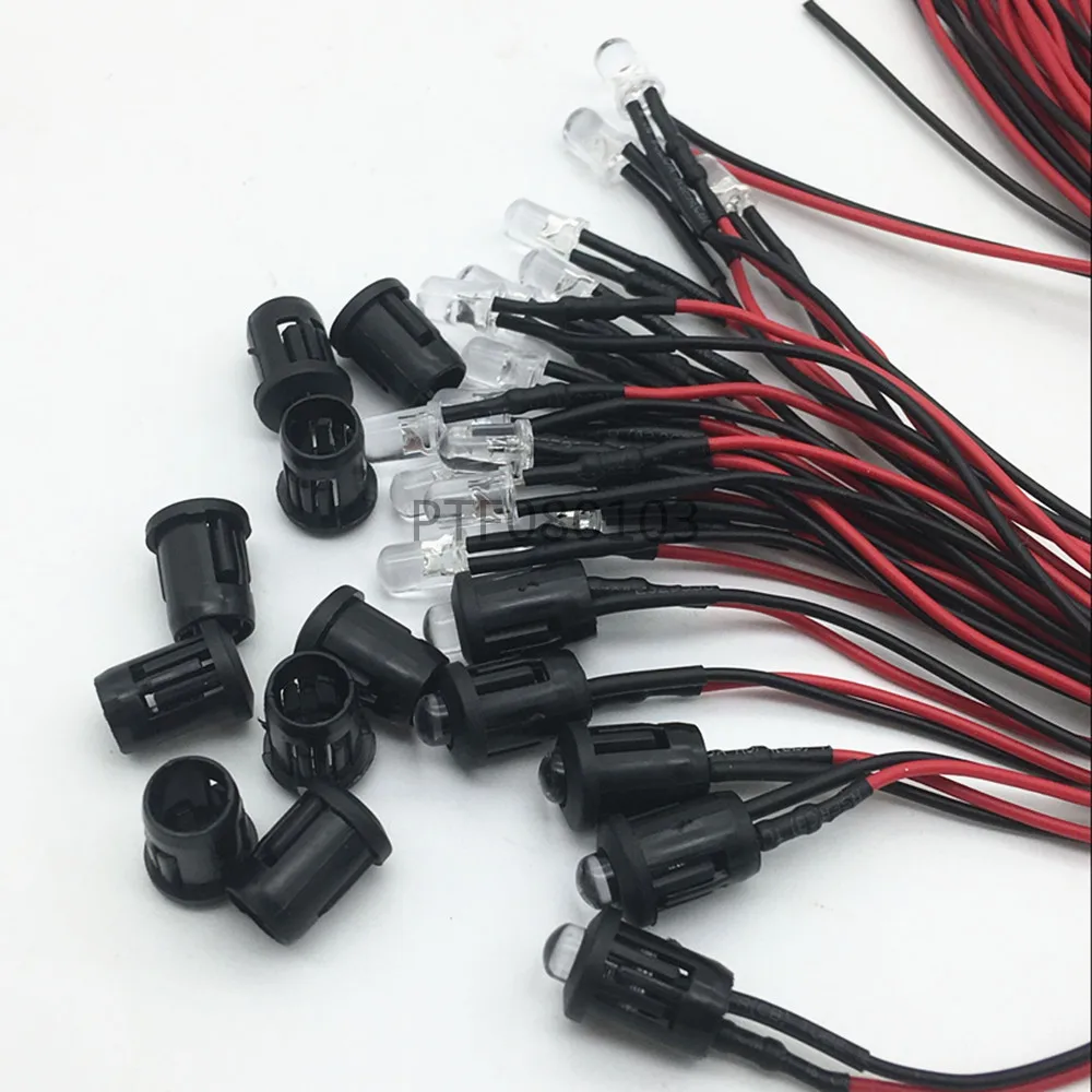 Круглые предварительно подключенные прозрачные светодиоды с пластиковым держателем, 3 в, 5 В, 12 В, 24 В постоянного тока, 3 мм5 мм, красныйзеленыйсинийRGB, 20 шт.