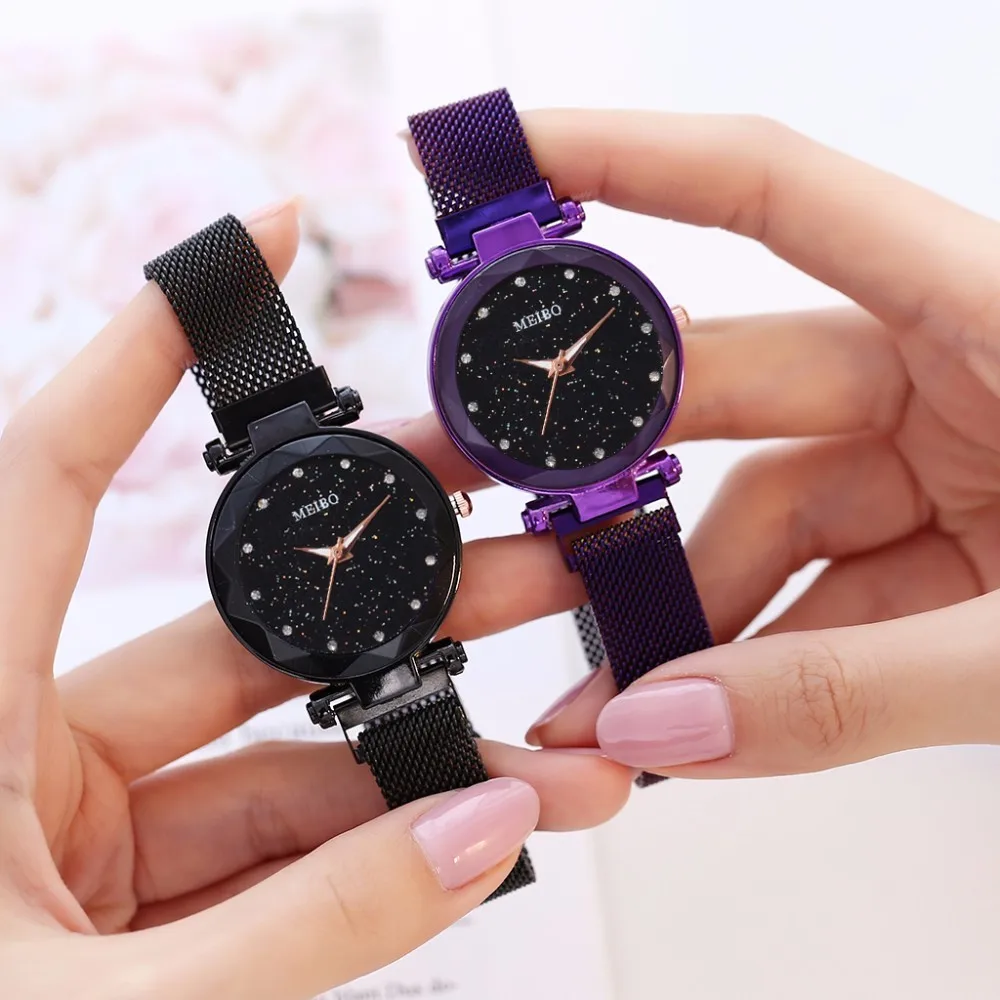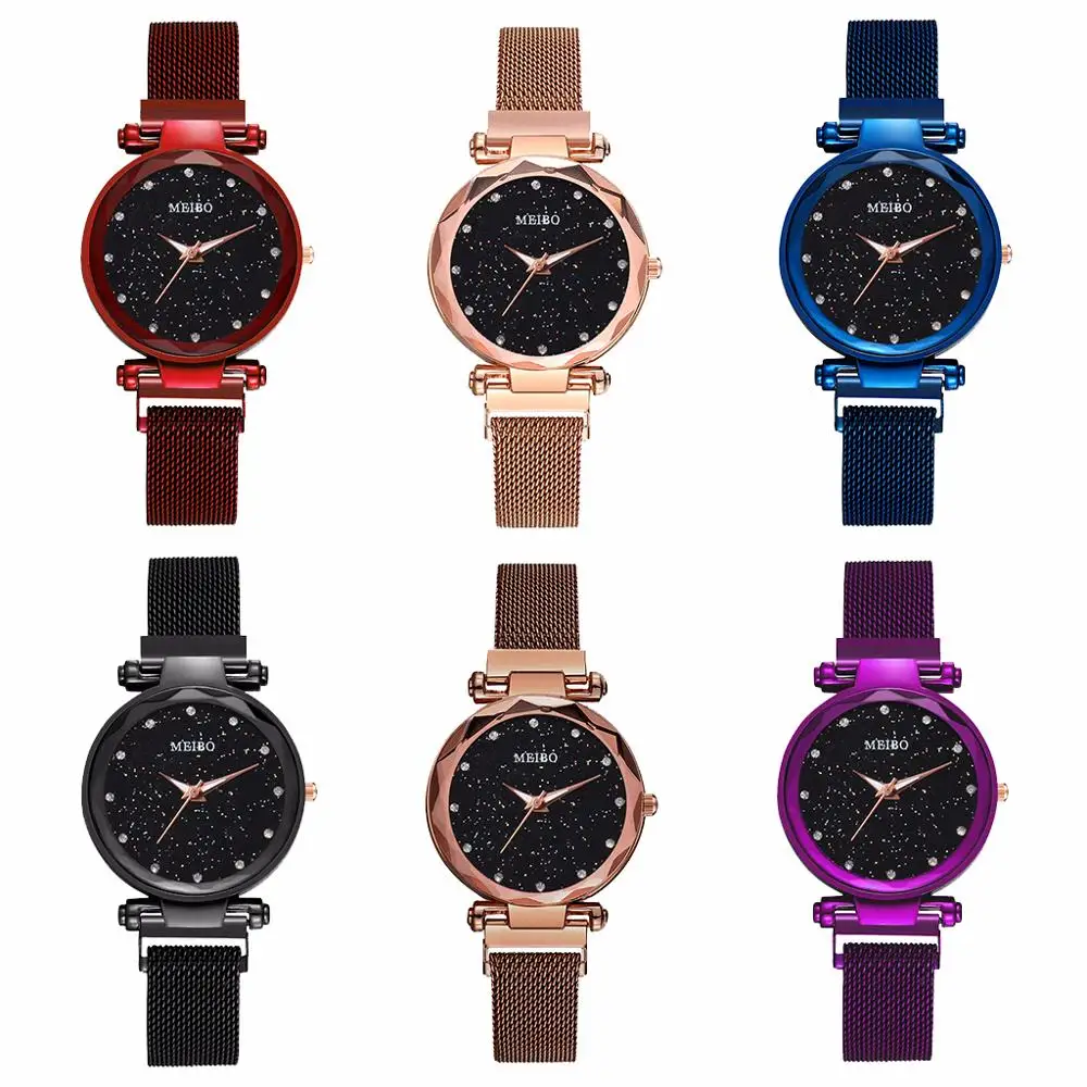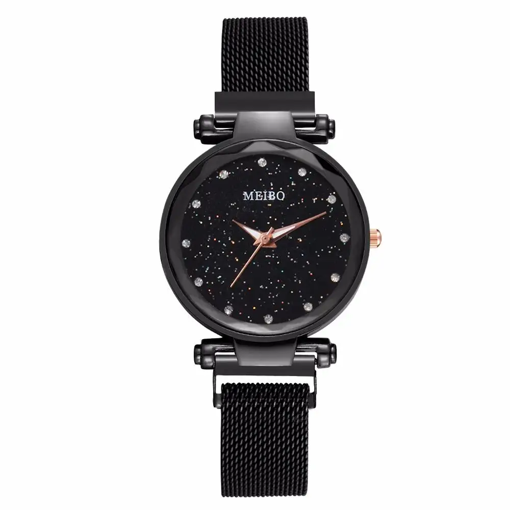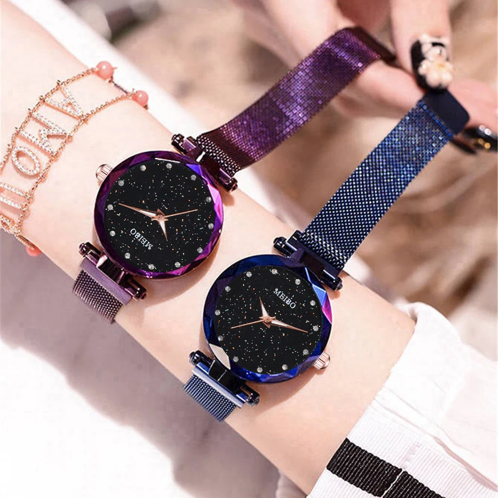 Женские часы со звездами, с магнитной пряжкой, повседневные, Роскошные, MEIBO, Женская Геометрическая поверхность, кварцевые часы, Relogio Feminino, Прямая поставка