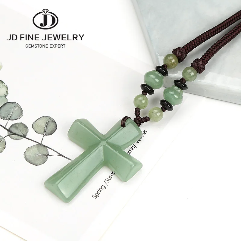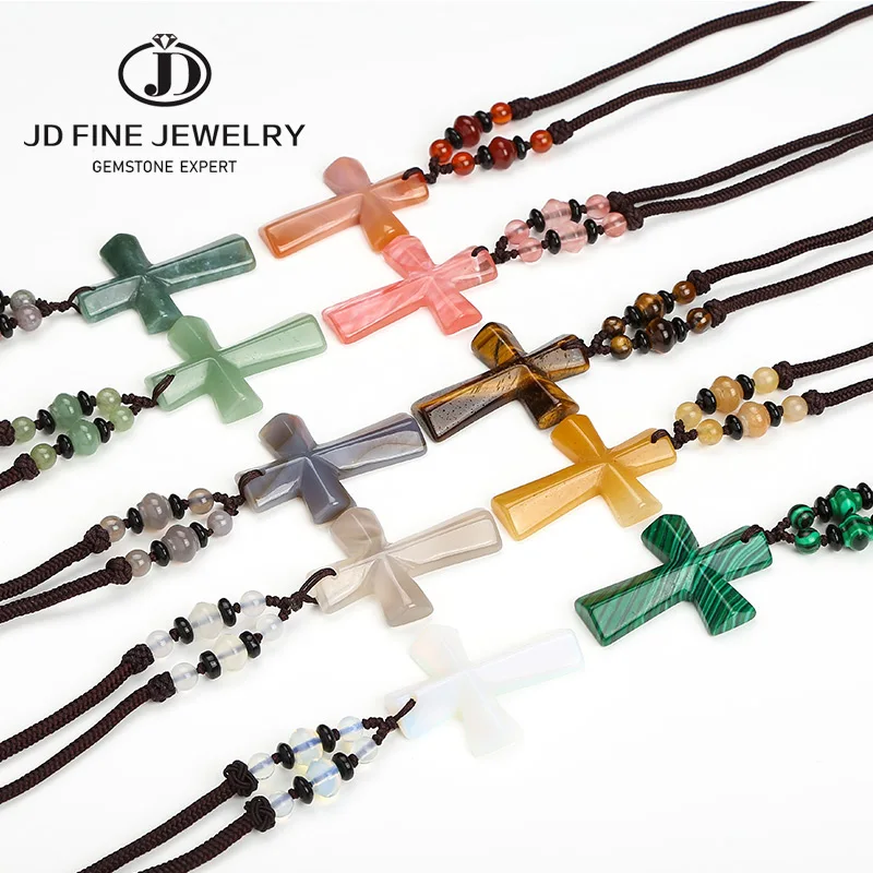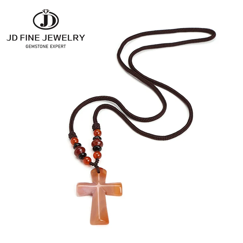 Подвеска-Крест JD из натуральных Соединенных бусин для мужчин и женщин, подвеска-крест из католического Христоса, длина 24 дюйма