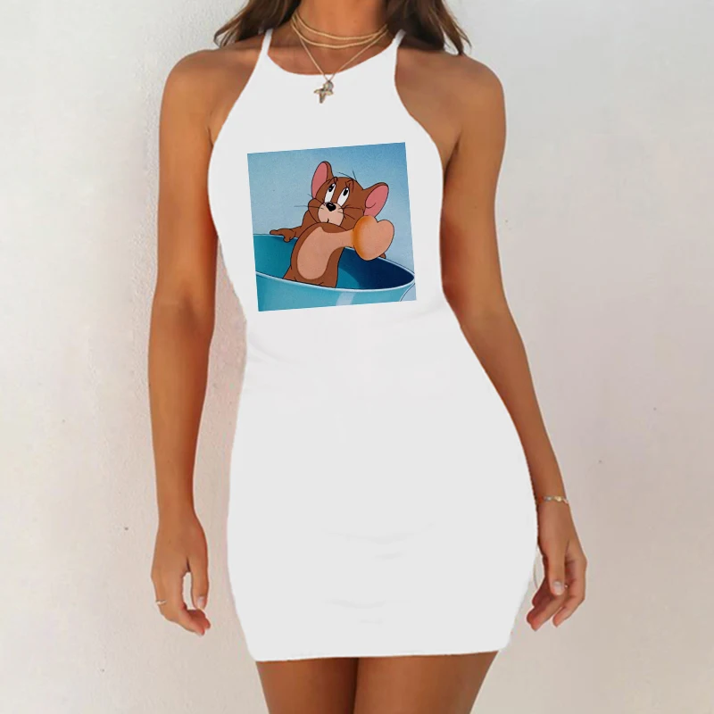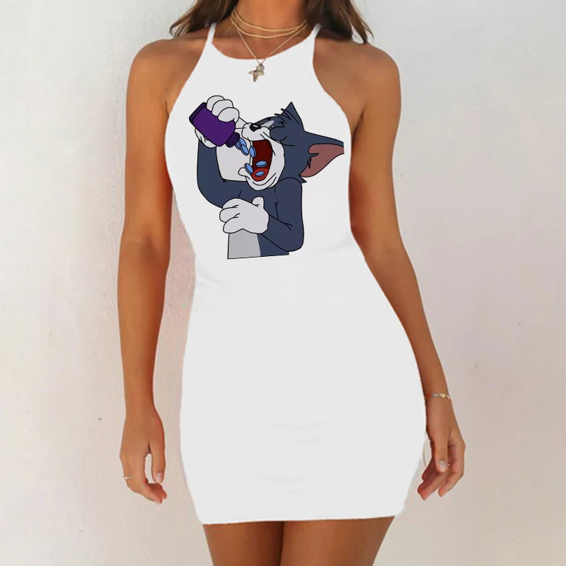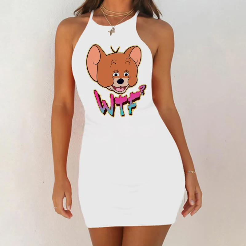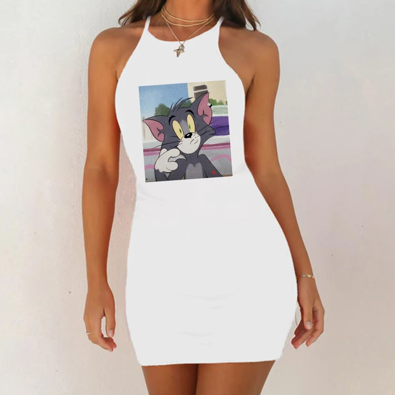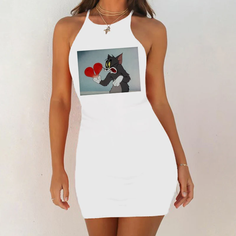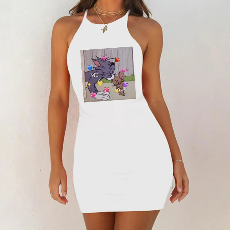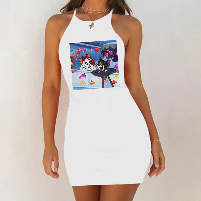 Женское сексуальное платье, Забавное платье с принтом кошек и мышей, женское платье для ночного клуба 2020, облегающее мини-платье на бретельках