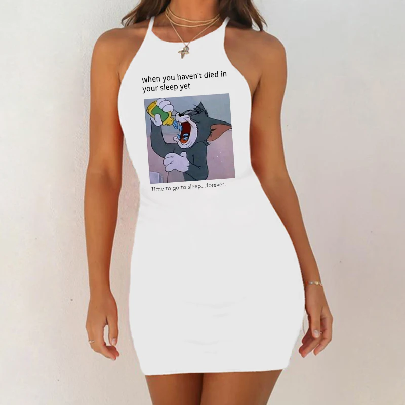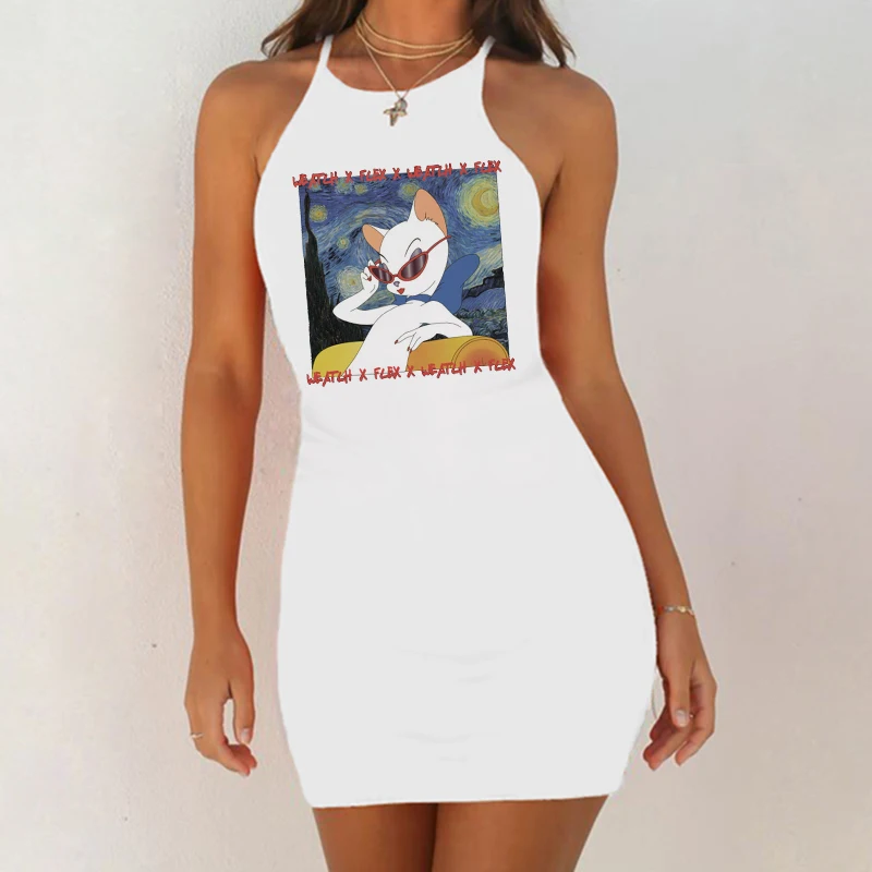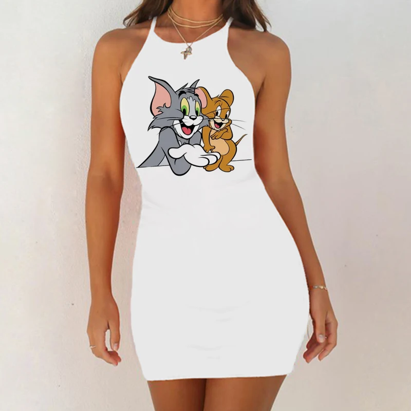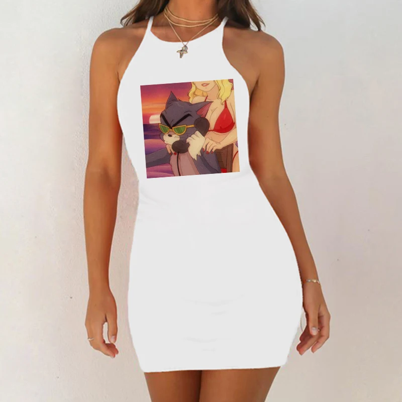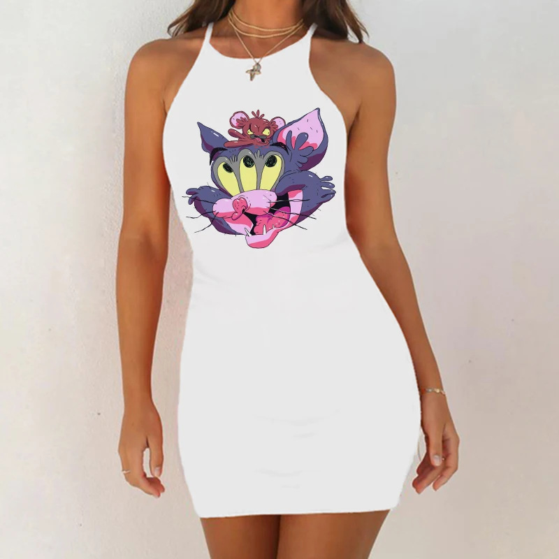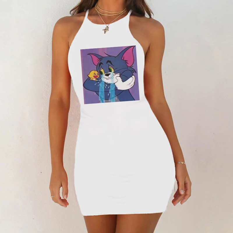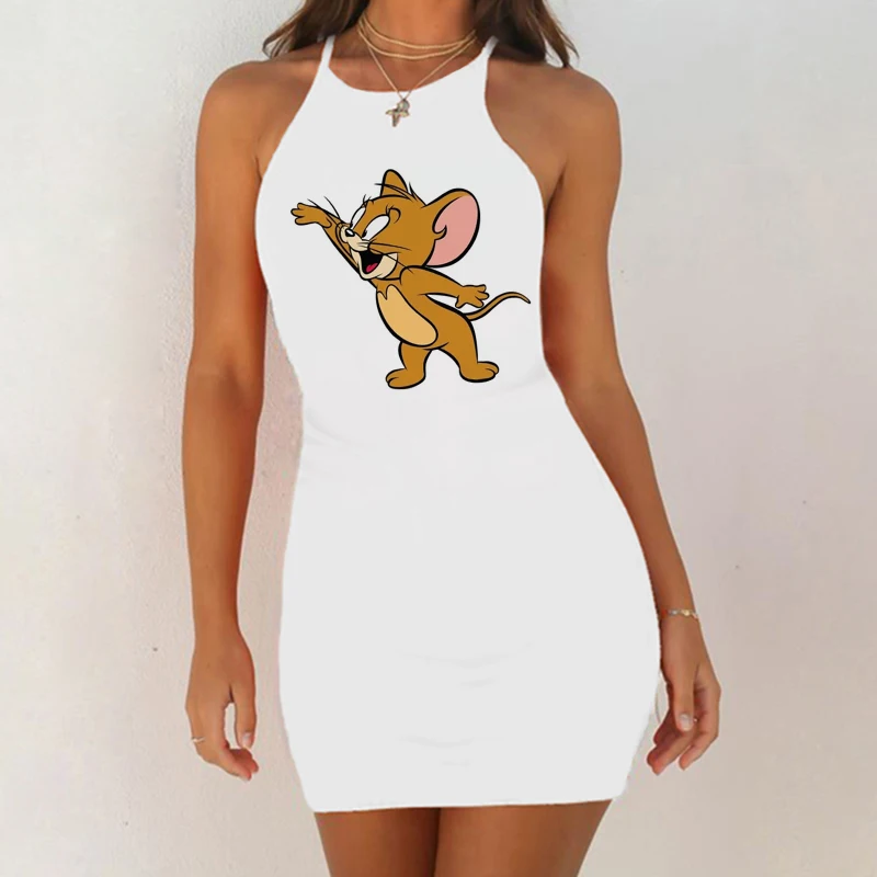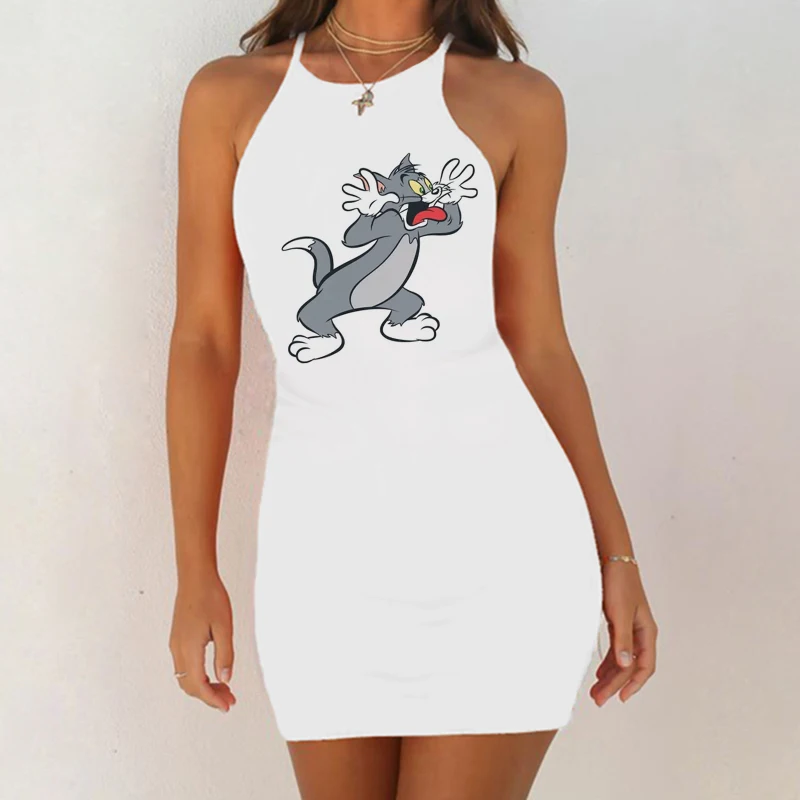 Женское сексуальное платье, Забавное платье с принтом кошек и мышей, женское платье для ночного клуба 2020, облегающее мини-платье на бретельках