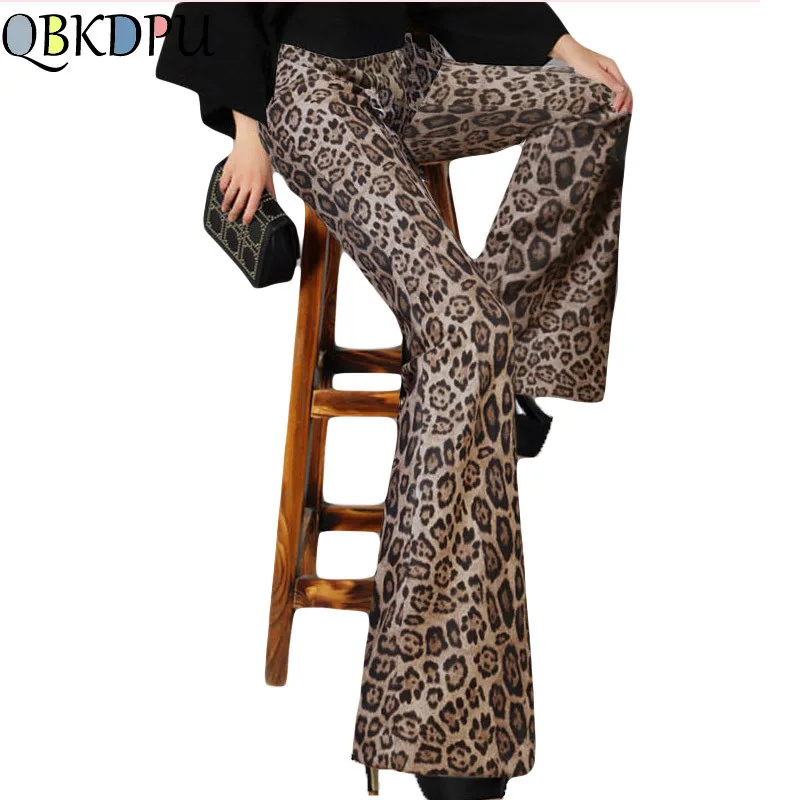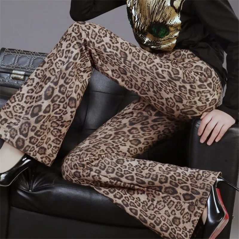 Женские расклешенные брюки с высокой талией, леопардовые брюки с леопардовым принтом, повседневные Сексуальные облегающие брюки для офиса и работы