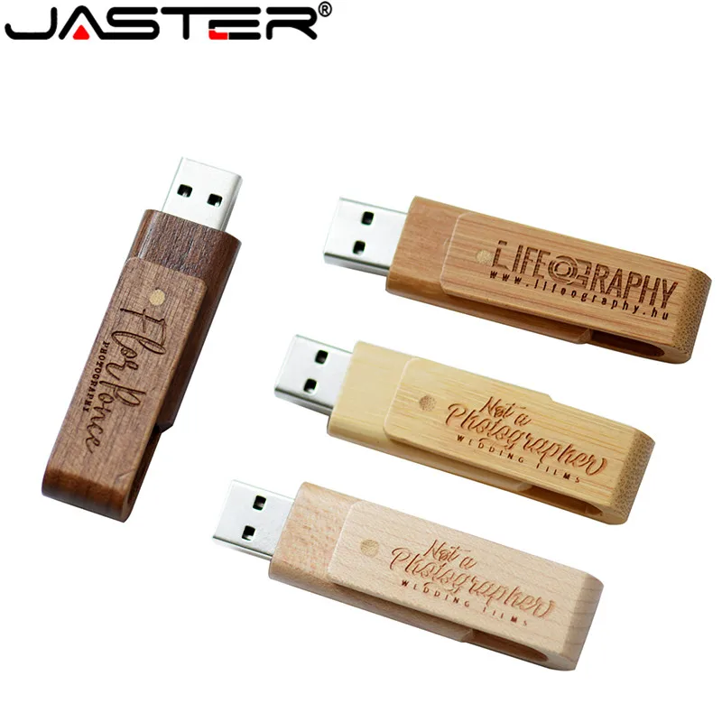 Usb-флеш-накопитель JASTER, вращающийся деревянный логотип, 4 ГБ, 8 ГБ, 16 ГБ, 32 ГБ, 64 ГБ, usb 2,0, подарок