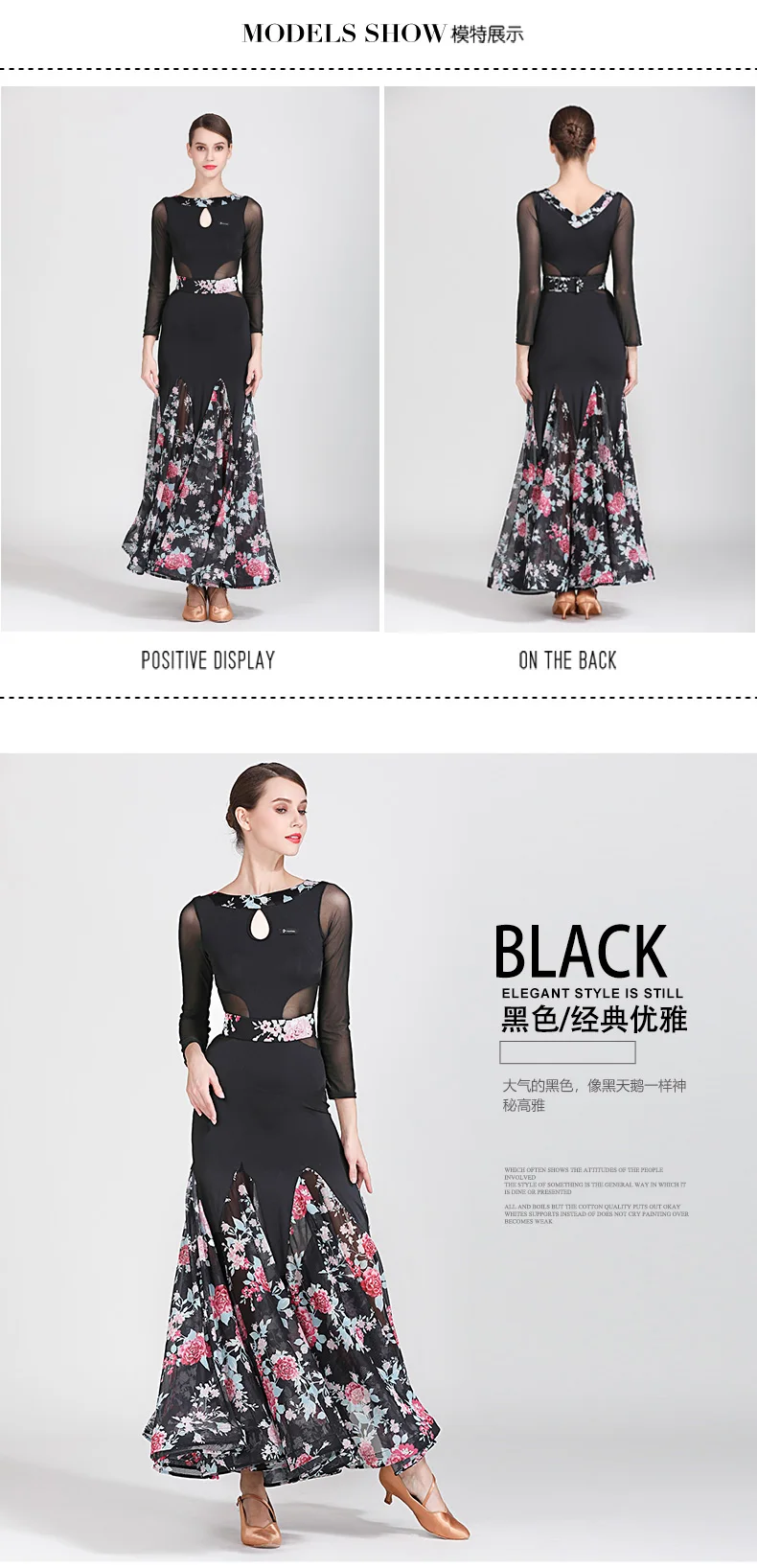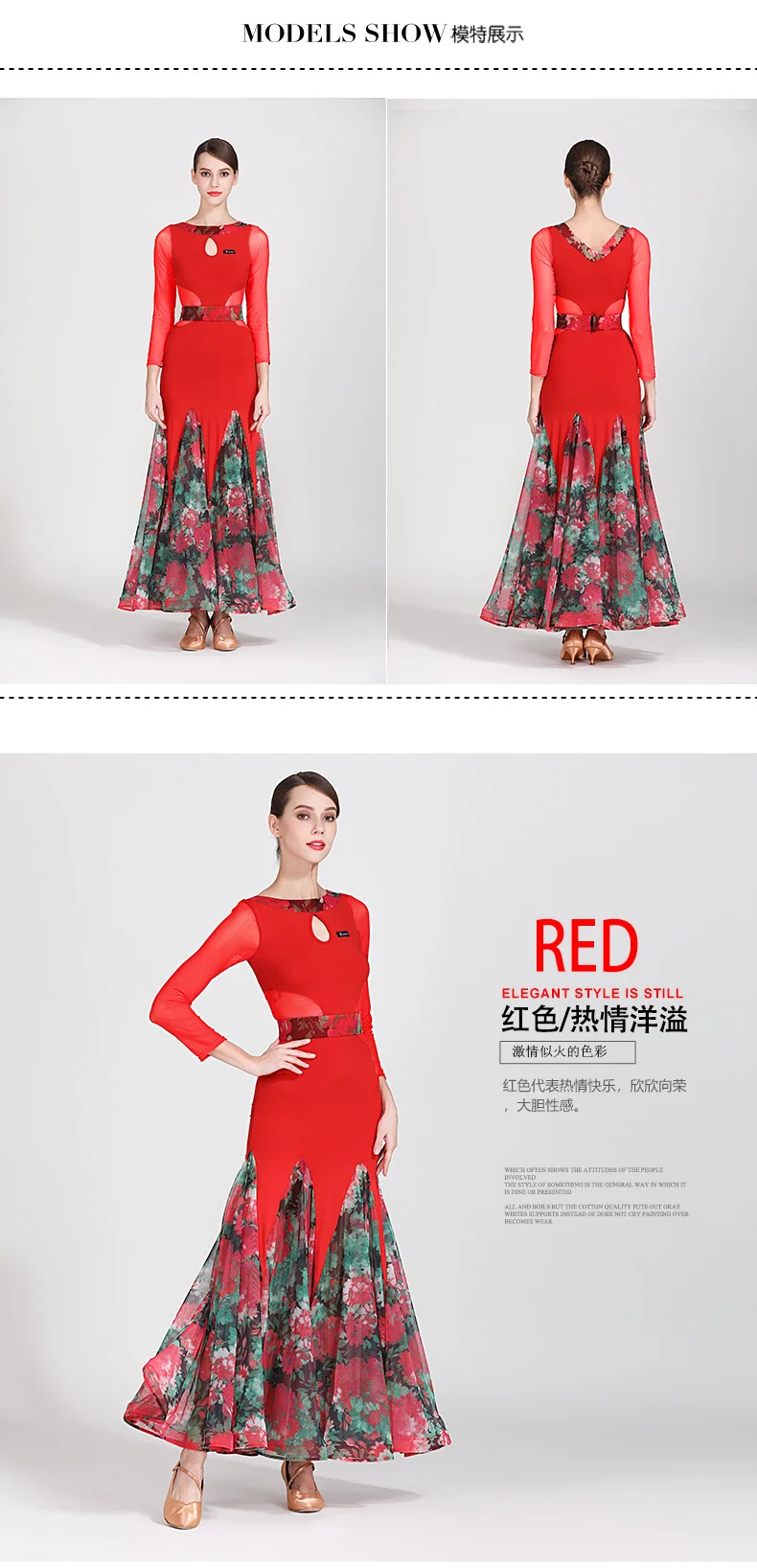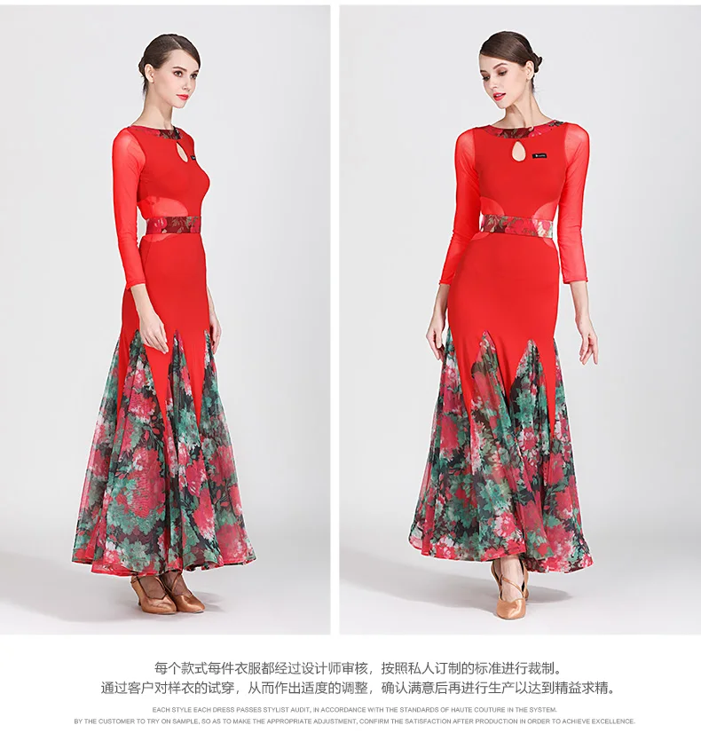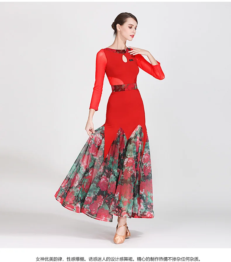 Костюм для современных танцев, женская одежда для бальных танцев, униформа для вальса и выступлений, одежда для бальных танцев, Сетчатое платье с принтом и большой юбкой, 1873
