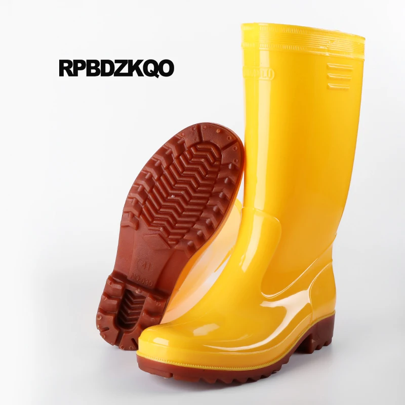 Белые, желтые осенние резиновые рыболовные сапоги, Мужская обувь для дождя, высокие черные удобные осенние водонепроницаемые сапоги без шнуровки, дешевые сапоги до колена 2021