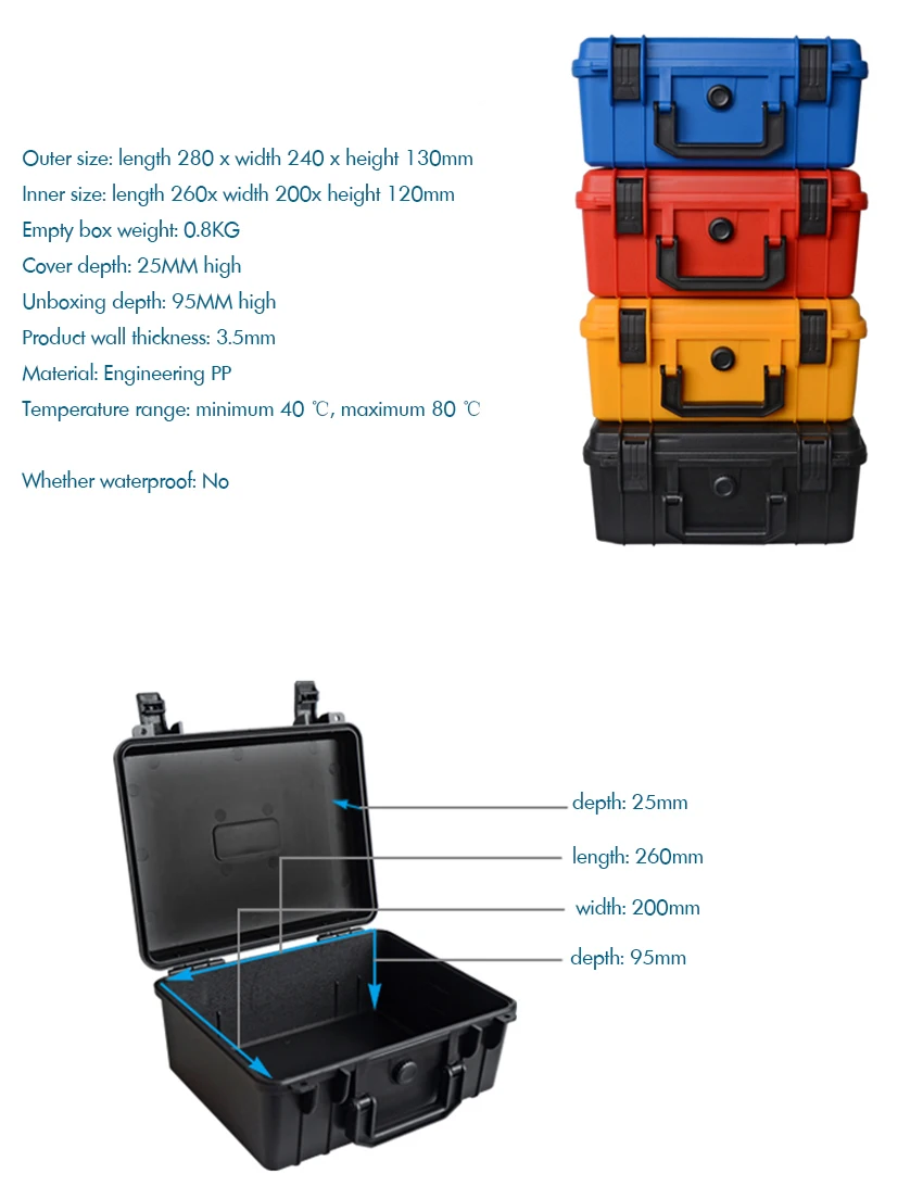 Пластиковый ящик для инструментов с ручкой, крышка с замком, пустая коробкаВстроенная деталь, органайзер и чехол для хранения, L280 x W240 x h130 мм