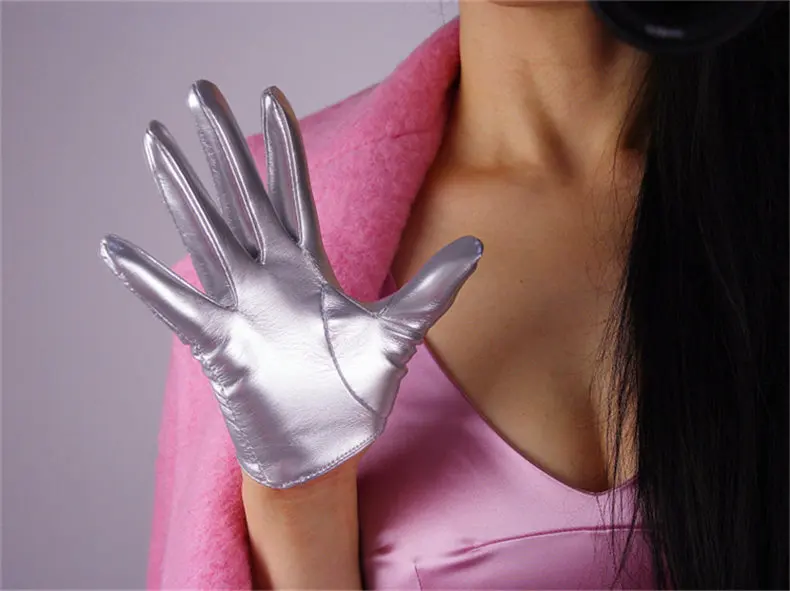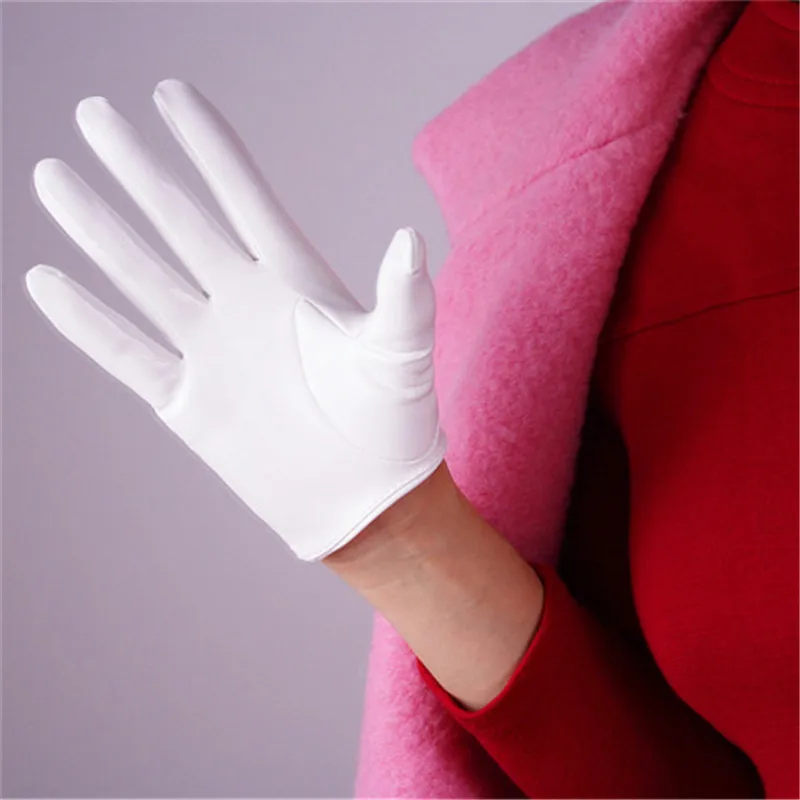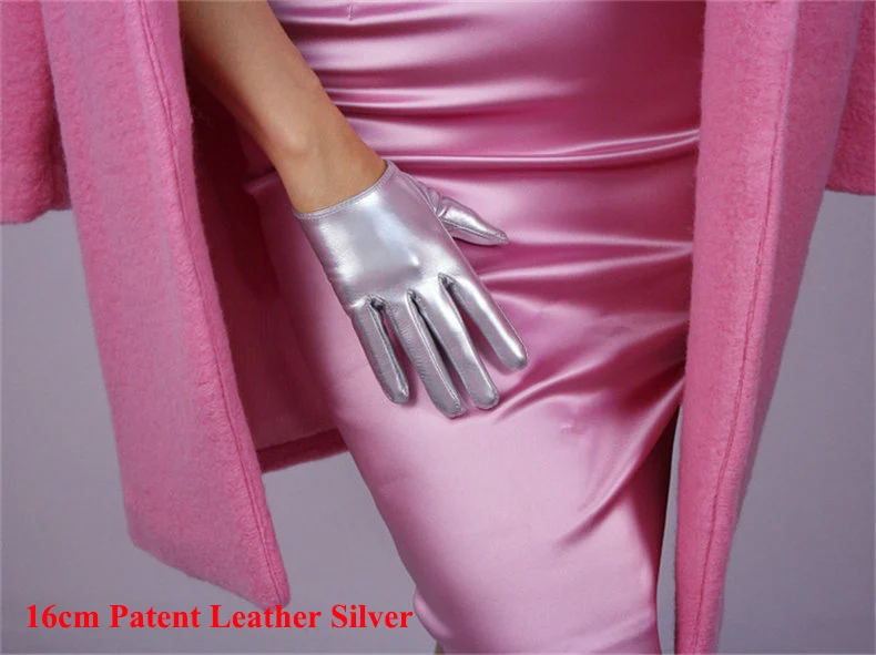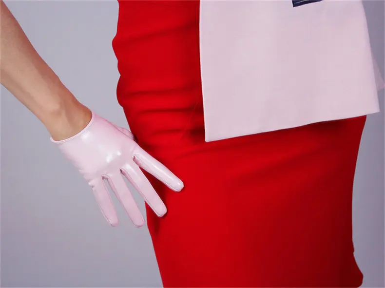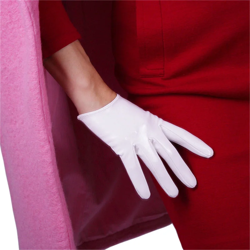 16 см лакированные кожаные короткие перчатки яркие белые черные красные из имитации кожи замшевые зеркальные Яркие Кожаные женские перчатки PU117