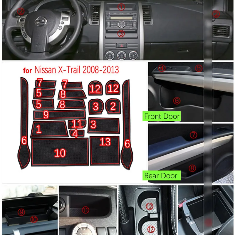 Interior Accessories Car Slot Mats Anti slip Pad for X-Trail T31