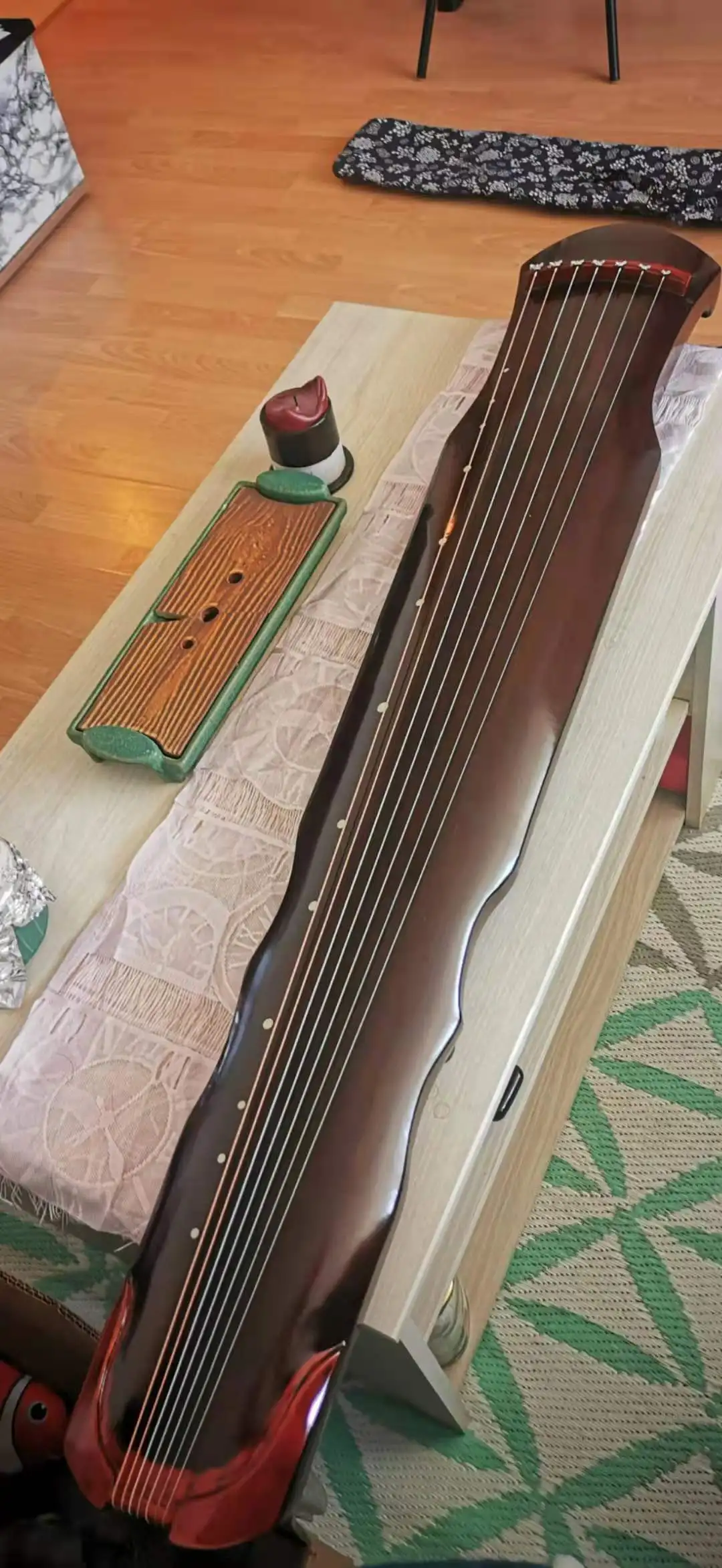 Гуцинь нормальный, ничего не повредилось в процессе доставки. Но пришлось оплатить таможенный сбор (о чем нигде не предупреждалось) и плохо работало отслеживание товара. Понравился чехол и сам гуцинь тоже красивый. В описании товара написано, что прилагается комплект струн. Однако у меня оказался набор еще одних кистей, а не струн.